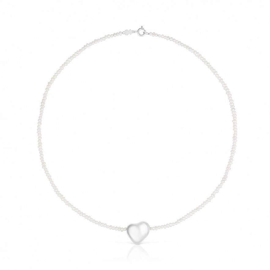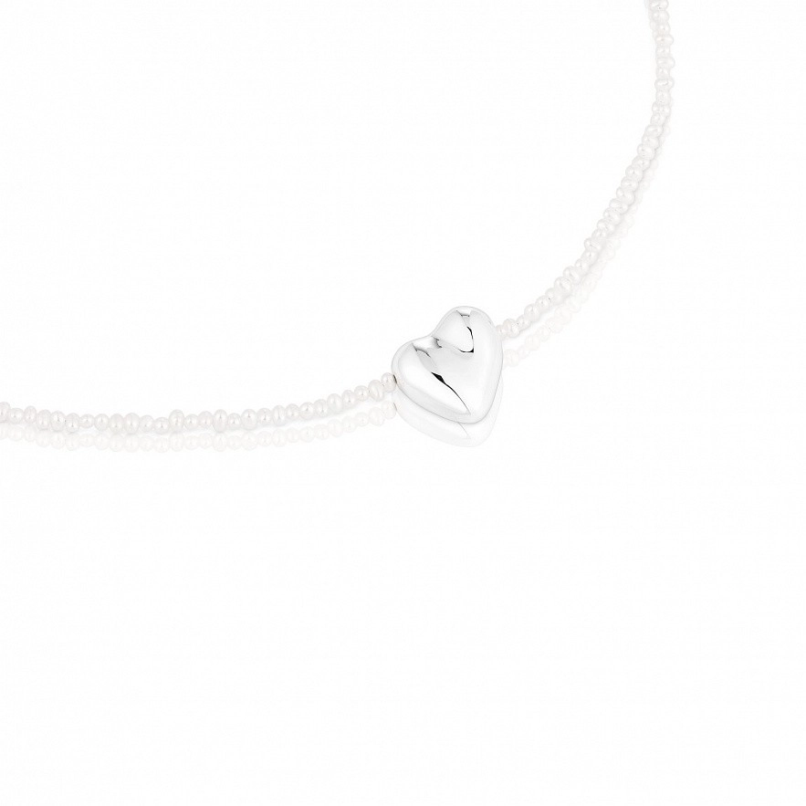 Колье TOUS Tabit с культивированным жемчугом и мотивом сердца из серебра. Размер культивируемых жемчужин: 2-2,5 мм. Размер мотива сердца: 16 мм. Длина ожерелья: 42 см. Застежка-пусет.