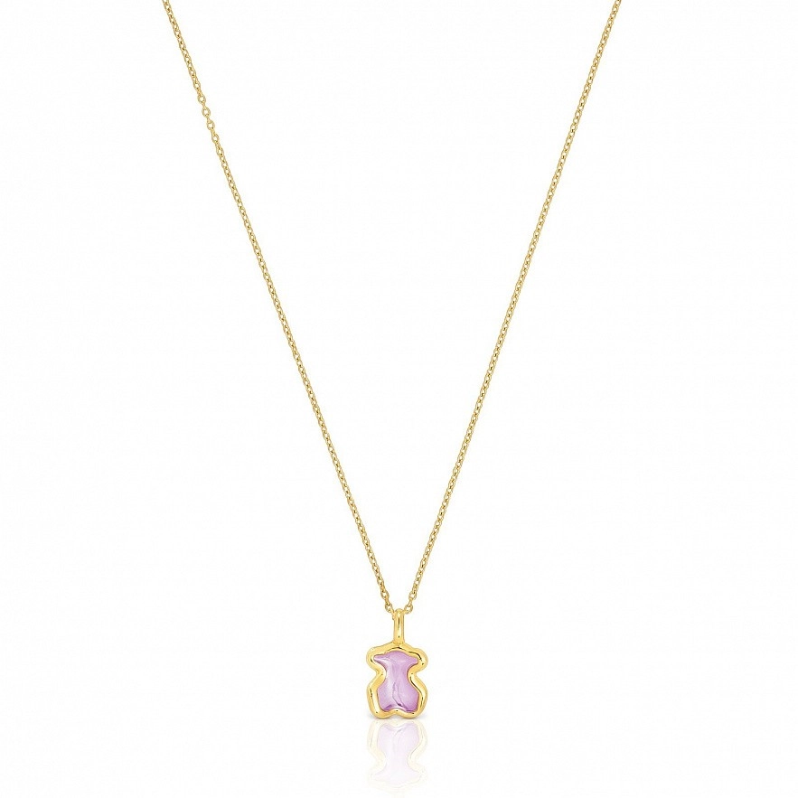 Колье TOUS Gregal из серебра 925 пробы с покрытием Vermeil и с мотивом кулона-медвежонка с сиреневой эмалью внутри и силуэтом из серебра 925 пробы с покрытием Vermeil . Размер мотива: 11,2х9,3 мм. Длина колье: 40-45 см. Пружинная застежка-кольцо.