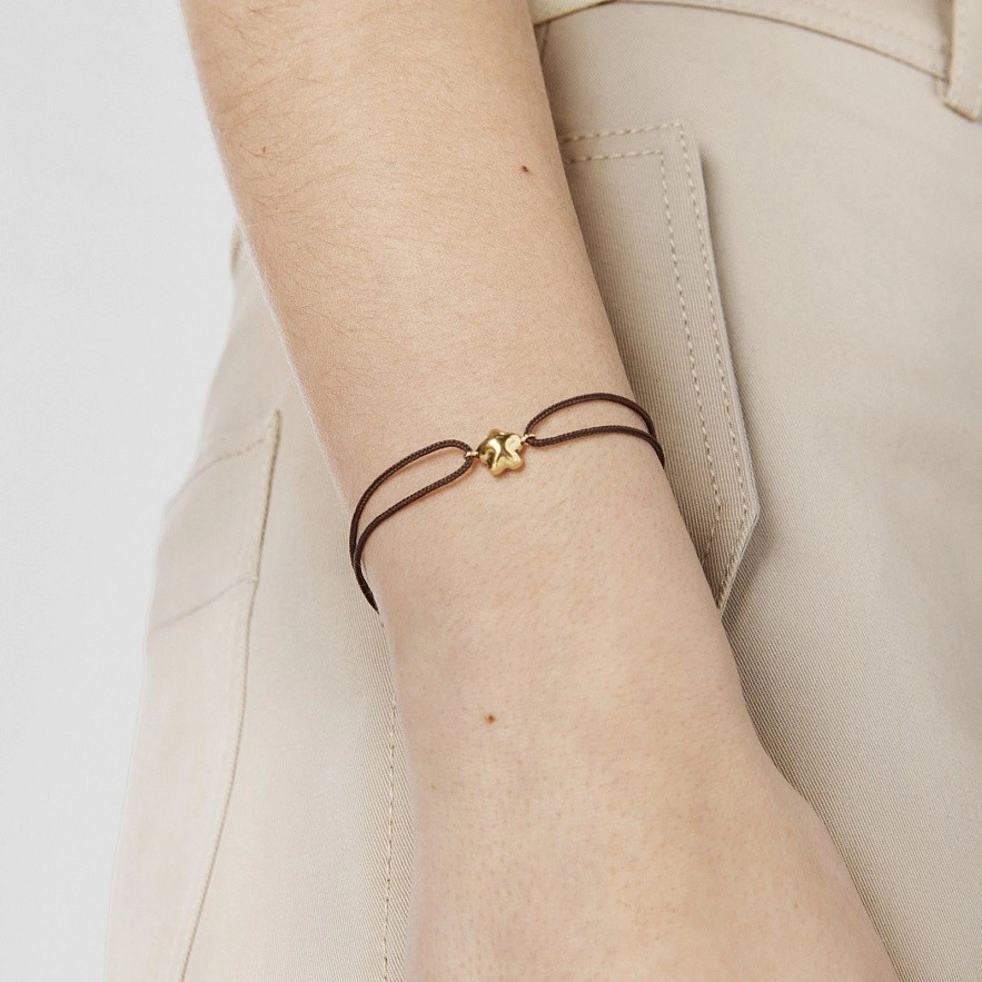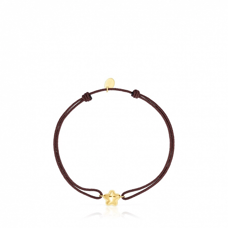 TOUS Balloon браслет с цветочным мотивом из 18-каратного золота и коричневого шнура. Размер мотива: 8 х 8,24 мм. Максимальная длина браслета: 20 см. Регулируемая застежка шнура.