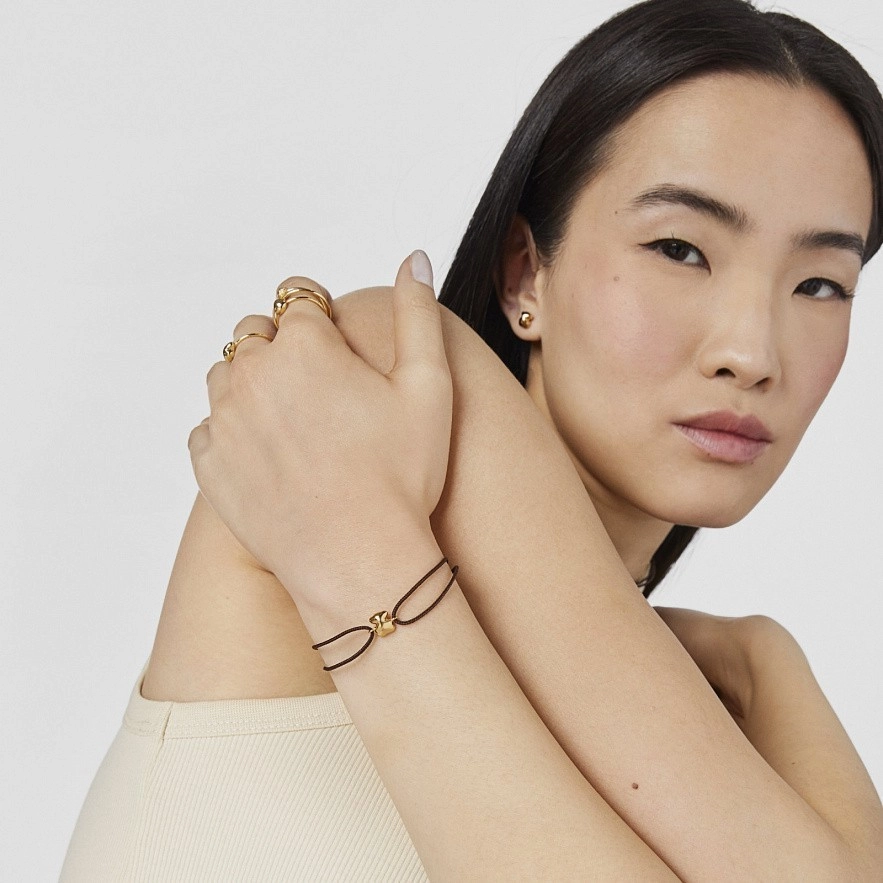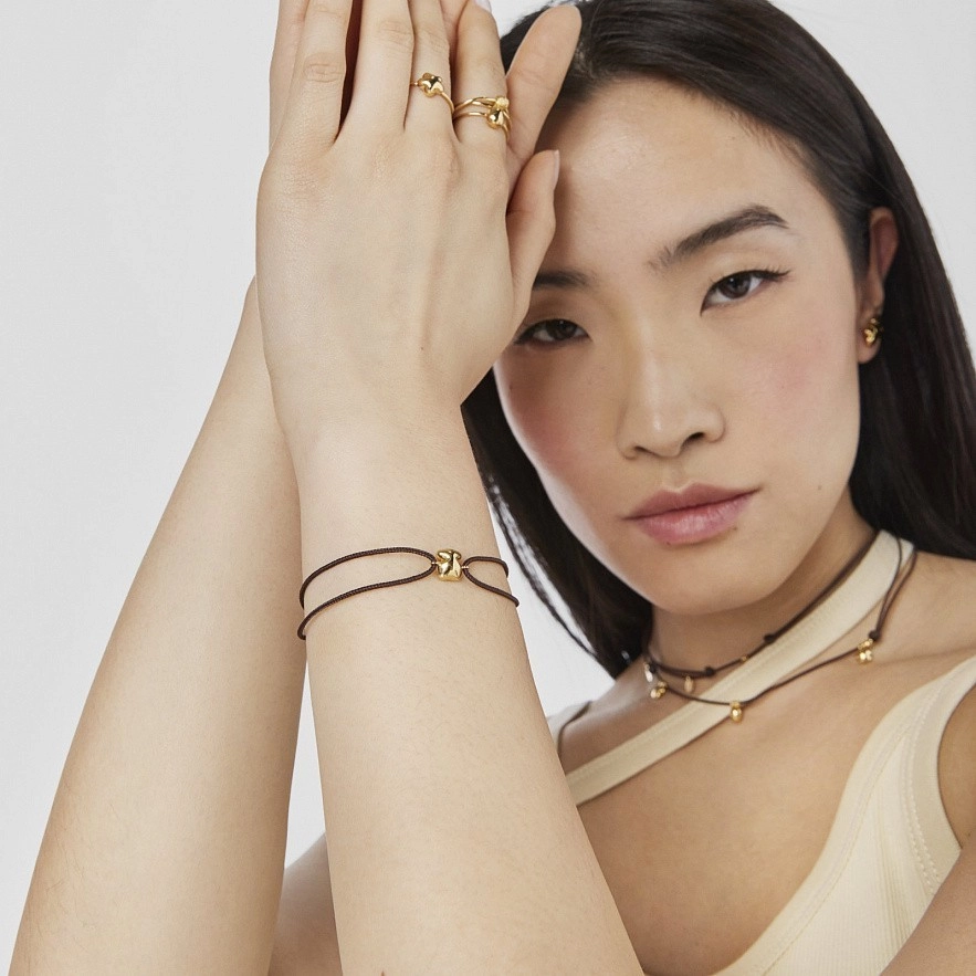 TOUS Balloon браслет с мотивом медведя из 18-каратного золота и коричневого шнура. Размер мотива: 8x6,64мм. Максимальная длина браслета: 20 см. Регулируемая застежка шнура.