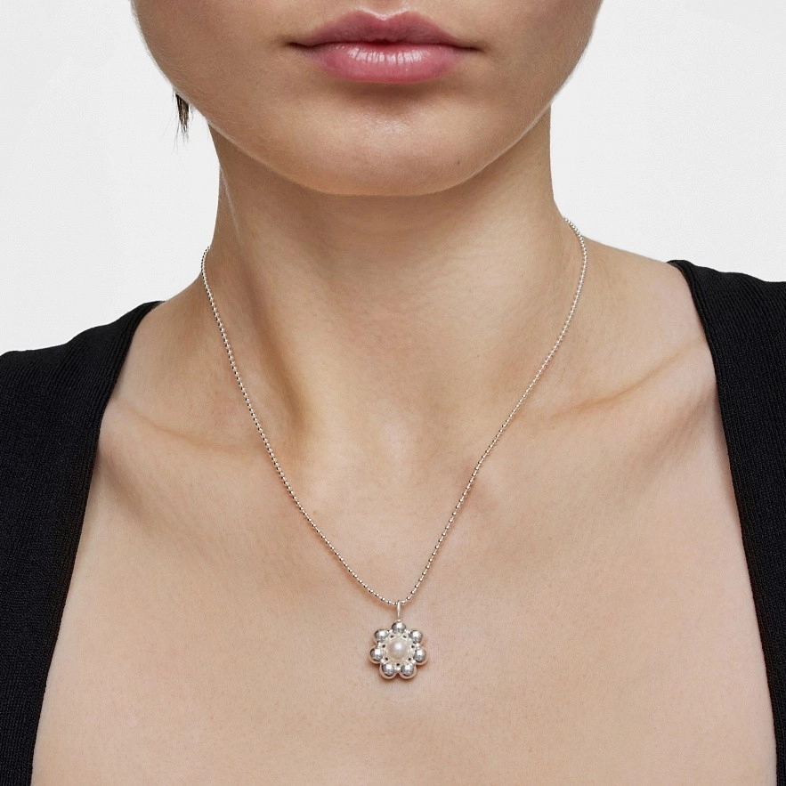 Ожерелье TOUS Sugar Party из серебра 925 пробы с цветочным мотивом и культивированной жемчужиной в центре мотива. Размер культивированной жемчужины: 6,5мм. Размер мотива: 16x16,28 мм. Длина ожерелья: 42-45 см. Застежка-лобстер.