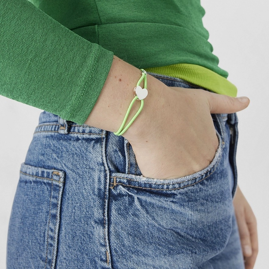 TOUS Sweet Dolls эластичный браслет фисташкового цвета с подвеской в виде сердца из серебра 925 пробы. Размер подвески: 11x11,72мм. Длина браслета: 17 см.