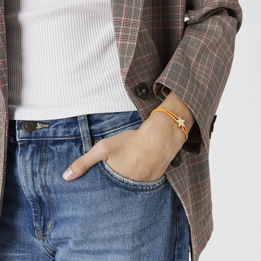 TOUS Sweet Dolls оранжевый эластичный браслет с подвеской в виде звезды из вермеля из серебра 925 пробы с покрытием Vermeil .. Размер подвески: 14 х 14,6 мм. Длина браслета: 17 см.