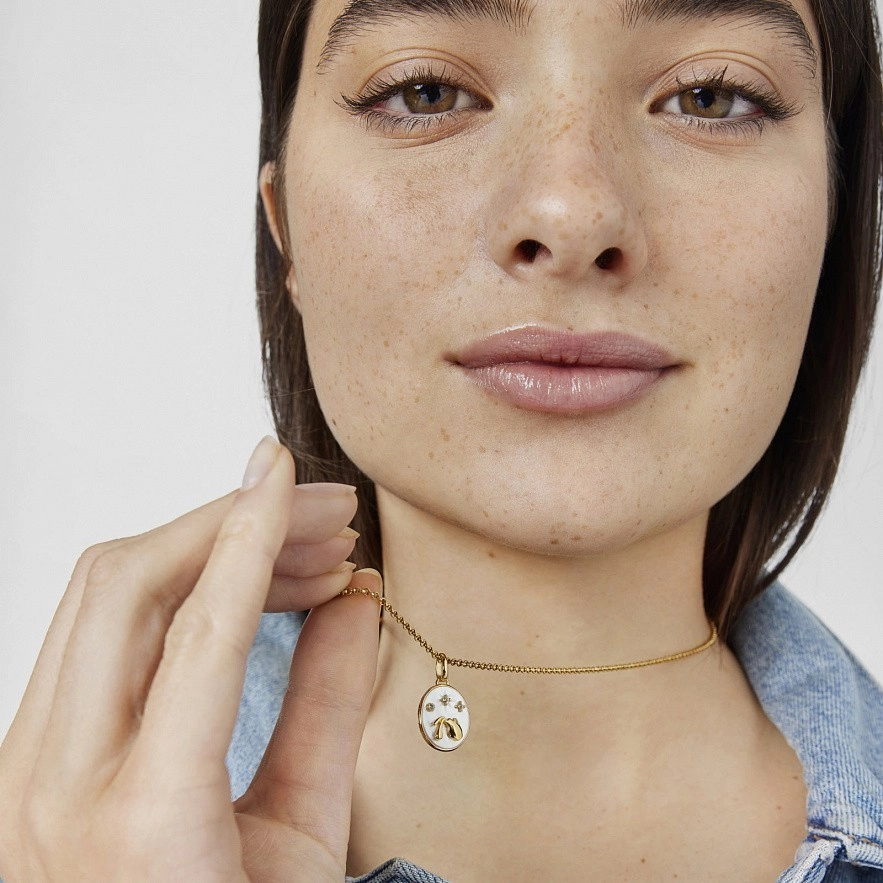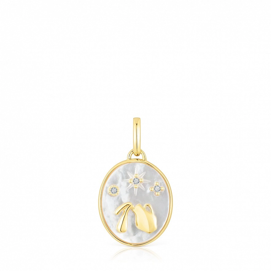 Подвеска TOUS гороскоп Водолей с перламутром и тремя топазами. На оборотной стороне кулона гравировка созвездия Большой Медведицы. Размер топаза: 1,2 мм. Размер подвески: 14 х 12 мм.Этот товар без цепочки.