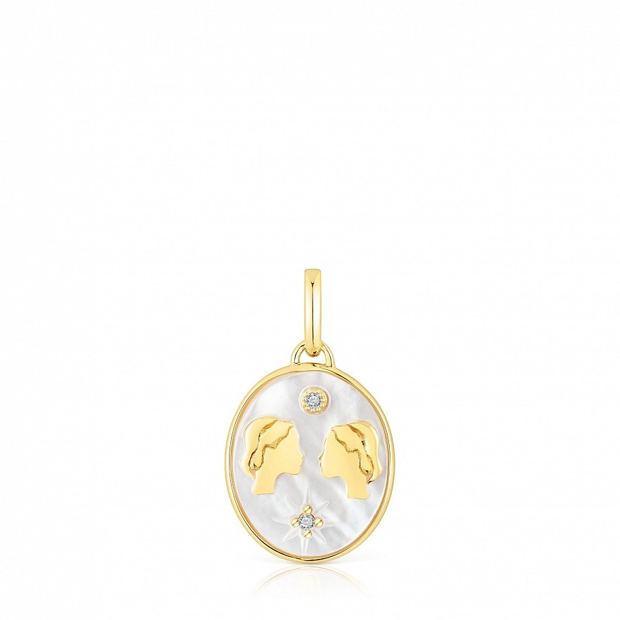 Подвеска TOUS гороскоп Близнецы из перламутрового серебра с перламутром и двумя топазами. На оборотной стороне кулона гравировка созвездия Большой Медведицы. Размер топаза: 1,2 мм. Размер подвески: 14 х 12 мм.Этот товар без цепочки.