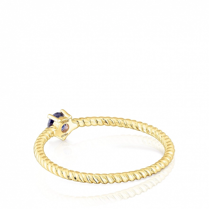 Кольцо TOUS Cool Joy из желтого золота 18 карат с граненым круглым иолитом в оправе размером 3 мм. Толщина кольца: 1,2мм.