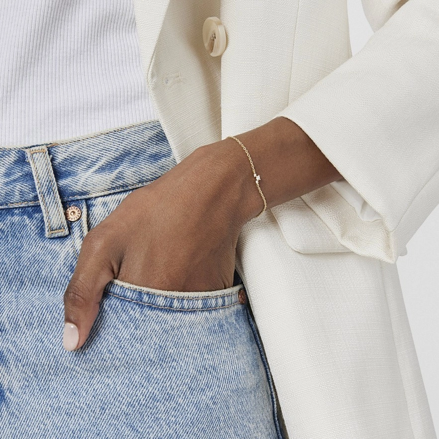 Браслет TOUS Les Classiques из 18-каратного золота с тремя бриллиантами классической огранки общим весом 0,06 карата. Качество бриллианта: H/SI. Длина браслета: 17,5 см. Застежка-лобстер.