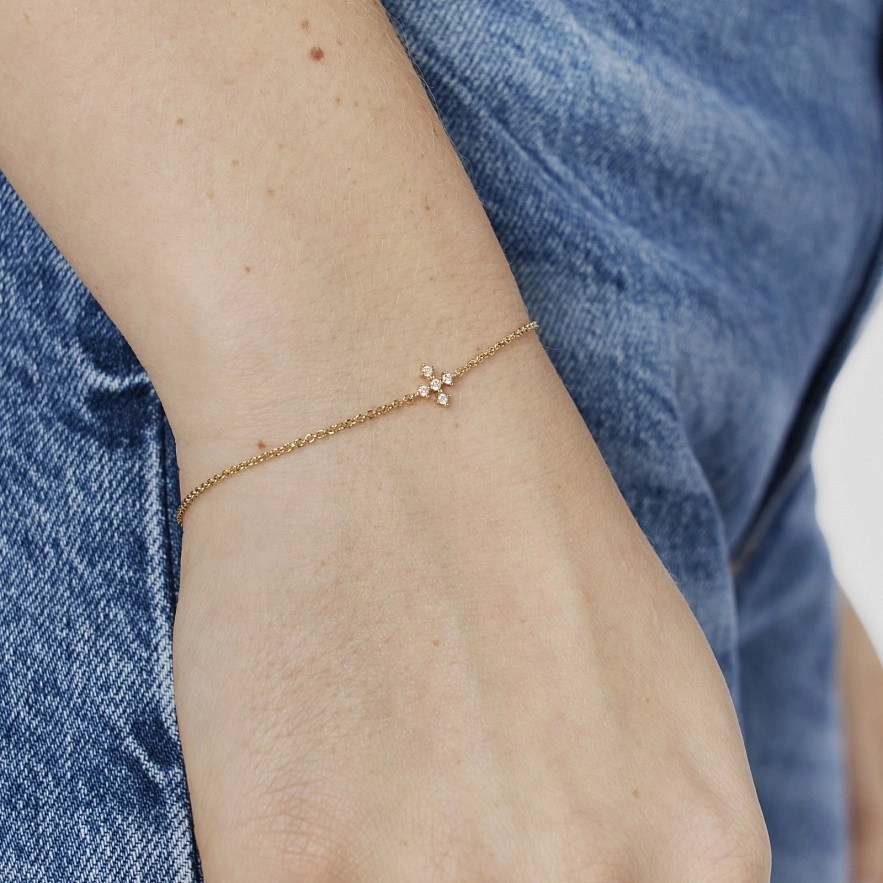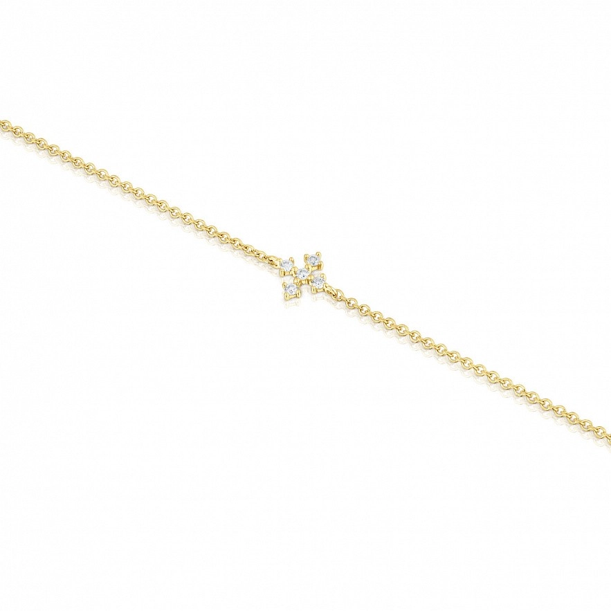 Браслет с крестом TOUS Les Classiques из 18-каратного золота с пятью бриллиантами классической огранки общим весом 0,08 карата. Качество бриллианта: H/SI. Длина браслета: 17,5 см. Застежка-лобстер.