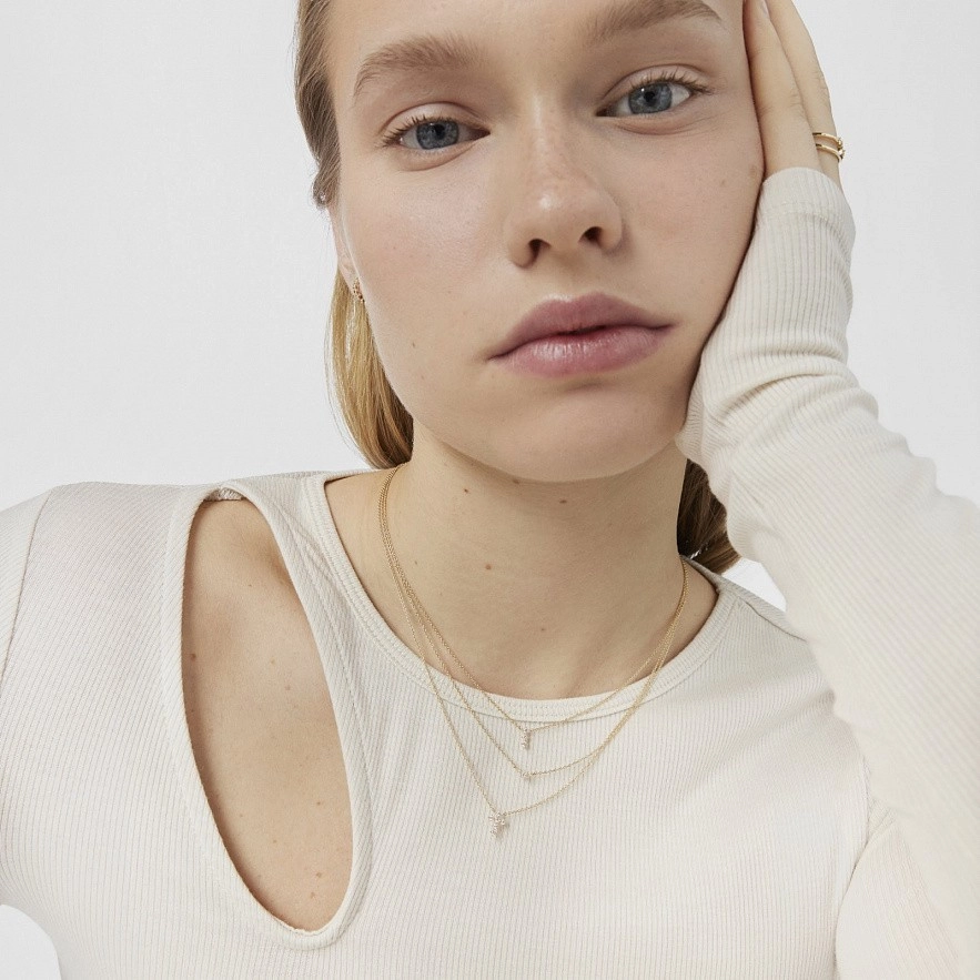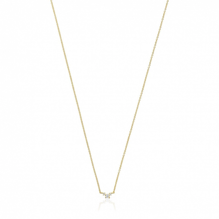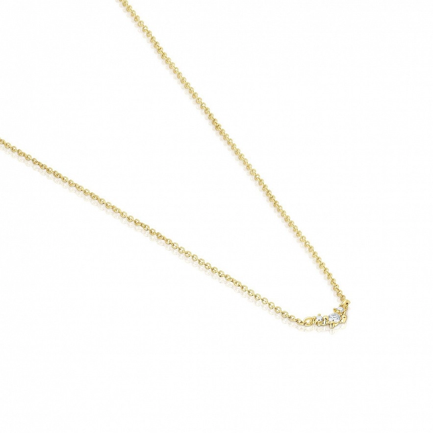 Ожерелье TOUS Les Classiques из 18-каратного золота с тремя бриллиантами классической огранки общим весом 0,06 карата. Качество бриллианта: H/SI. Длина колье: 42-45 см. Застежка пружинное кольцо.