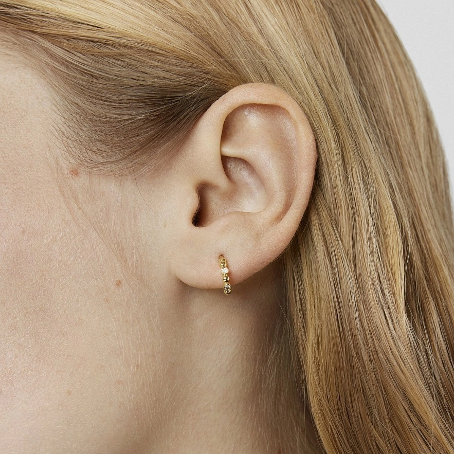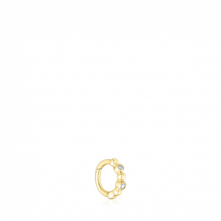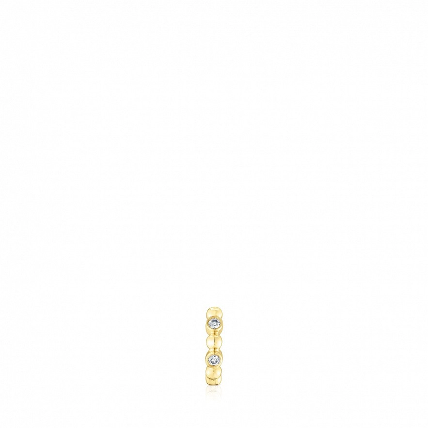 Серьга-каффа TOUS Les Classiques с золотыми шариками и двумя бриллиантами классической огранки общим весом 0,03 карата. Качество бриллианта: H/SI. Диаметр кольца: 6,3 мм. Толщина кольца: 1,1 мм.