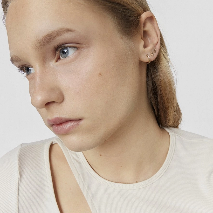 Серьга-каффа TOUS Les Classiques из 18-каратного золота с тремя бриллиантами классической огранки общим весом 0,07 карата. Качество бриллианта: H/SI. Диаметр кольца: 8,4 мм. Толщина кольца: 1,2 мм.