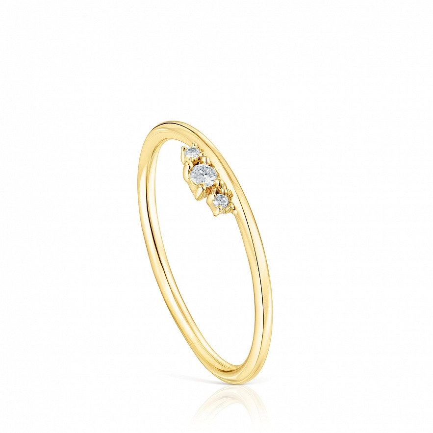 Кольцо TOUS Les Classiques из 18-каратного золота с тремя бриллиантами классической огранки общим весом 0,05 карата. Качество бриллианта: H/SI. Толщина кольца: 1,3 мм.