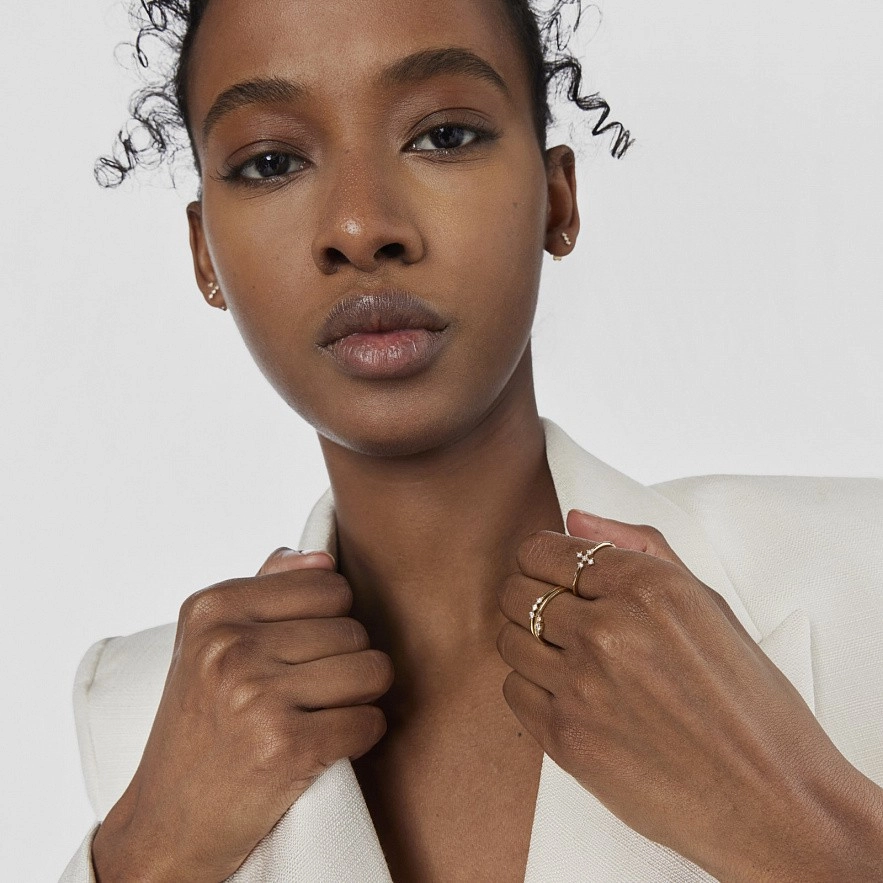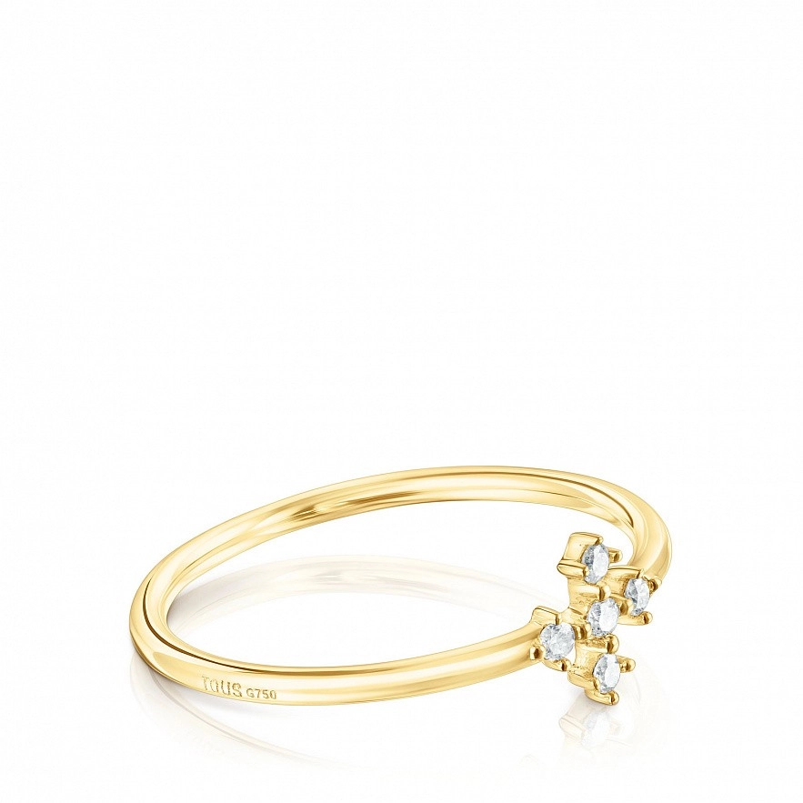 Кольцо TOUS Les Classiques с крестом из 18-каратного золота с пятью бриллиантами классической огранки общим весом 0,08 карата. Качество бриллианта: H/SI. Толщина кольца: 1,3 мм.