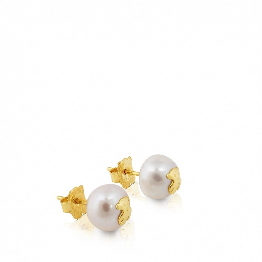Серьги TOUS Bear, из желтого золота 18 kt, с культивированным пресноводным жемчугом - 10мм.