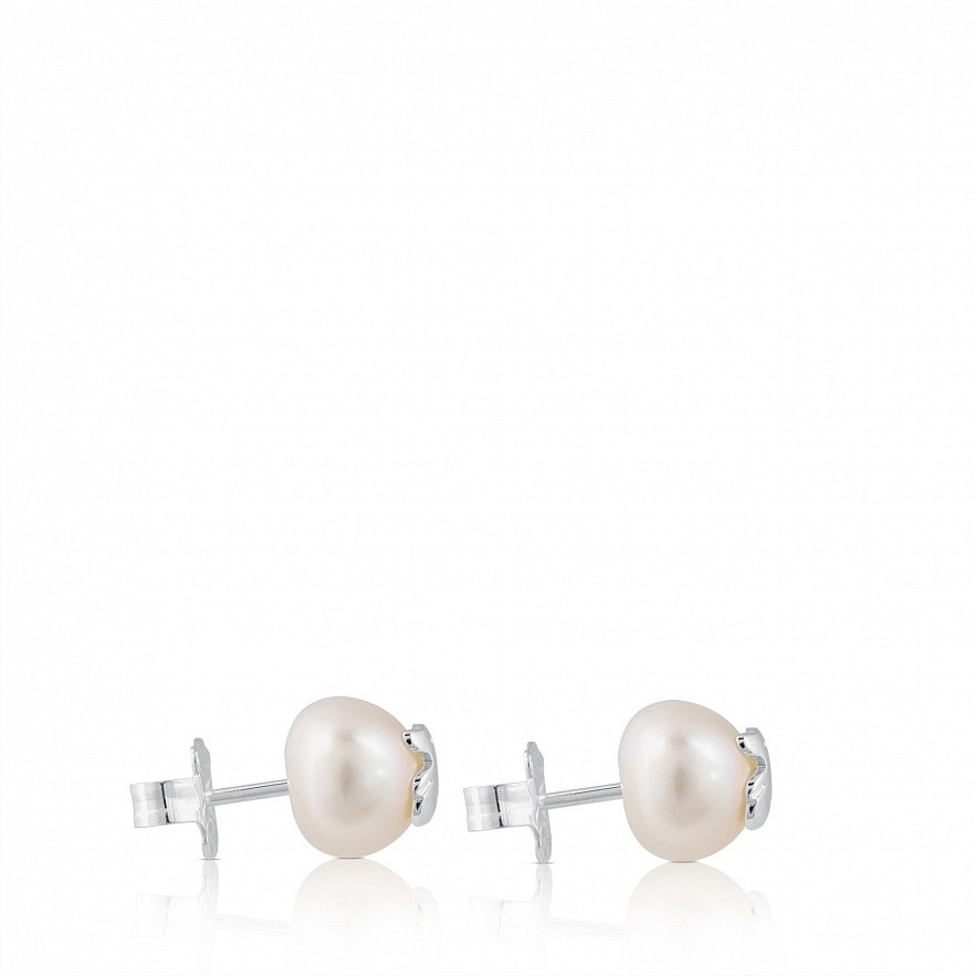 Серьги TOUS Bear из Серебра высшей пробы с жемчугом. Застежка-пусет. Вставка: 1 см.