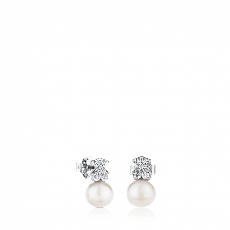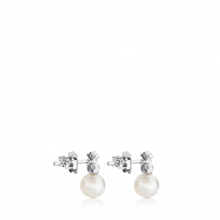 Серьги TOUS Puppies из белого золота 18 карат, бриллиантов и жемчуга диаметром 6,5- 7 мм. Общий вес: 0,08 карата. Размер: 12 мм.