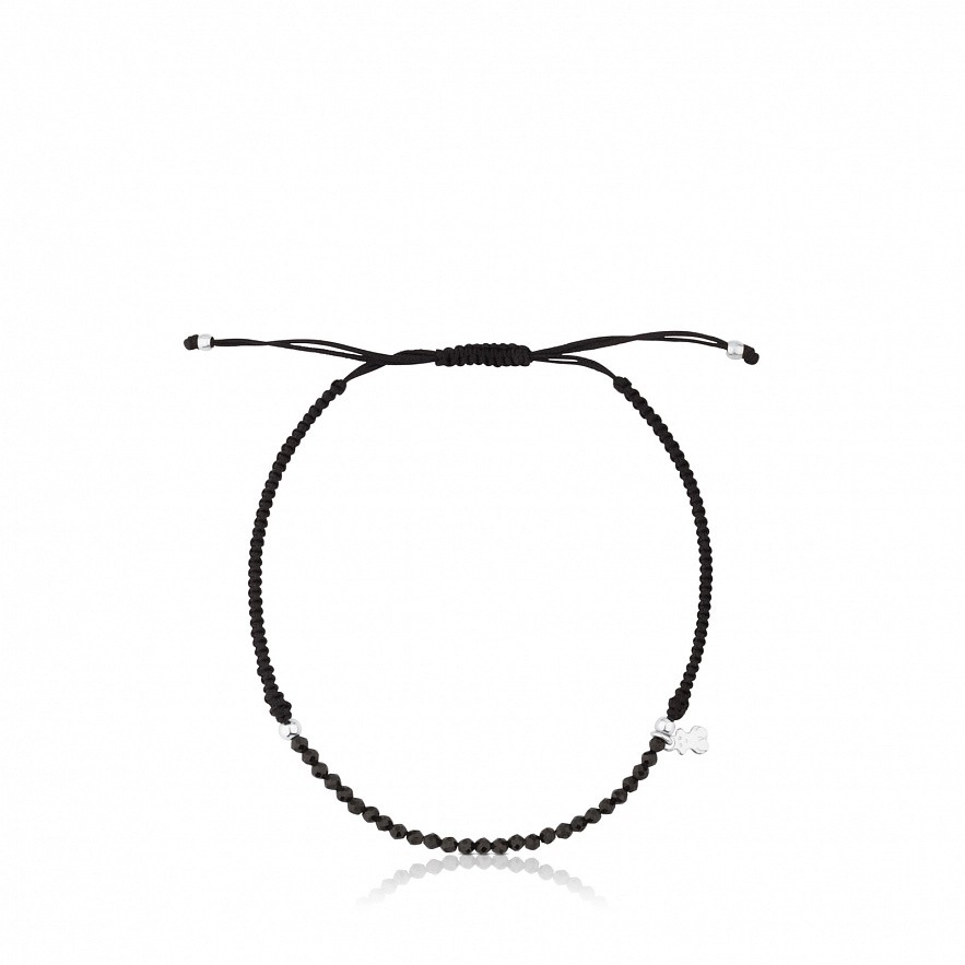 Браслет TOUS Color, из серебра 925 пробы со шпинелью, черный шнурок.