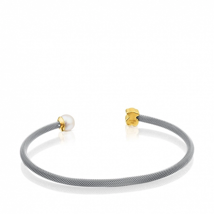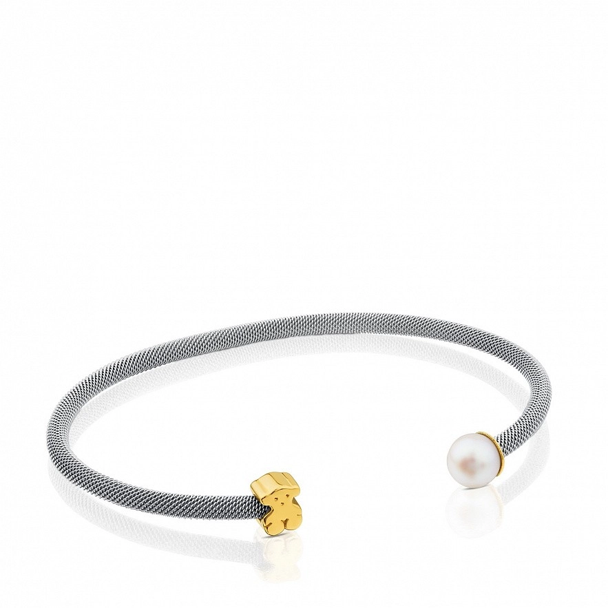 Браслет TOUS Icon Mesh из желтого золота 750 пробы и стали с мишкой и жемчужиной. Размер: 6,5 мм. - 7 мм.