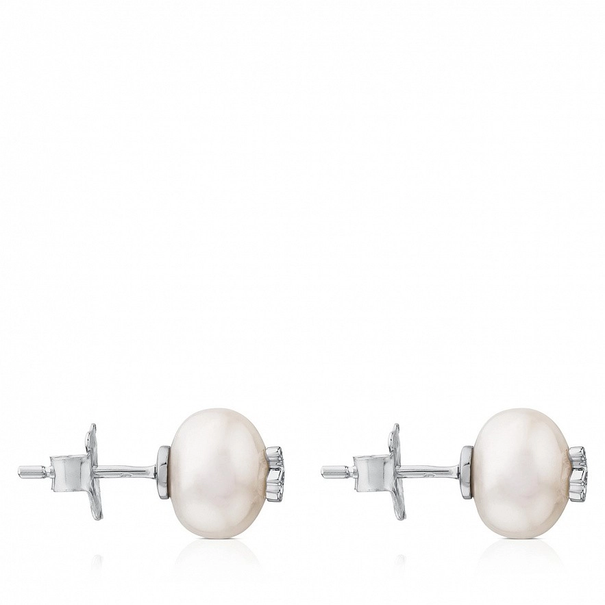 Серьги TOUS Puppies из белого золота с бриллиантами 0,02 kt и жемчугом 0,95-1 см.