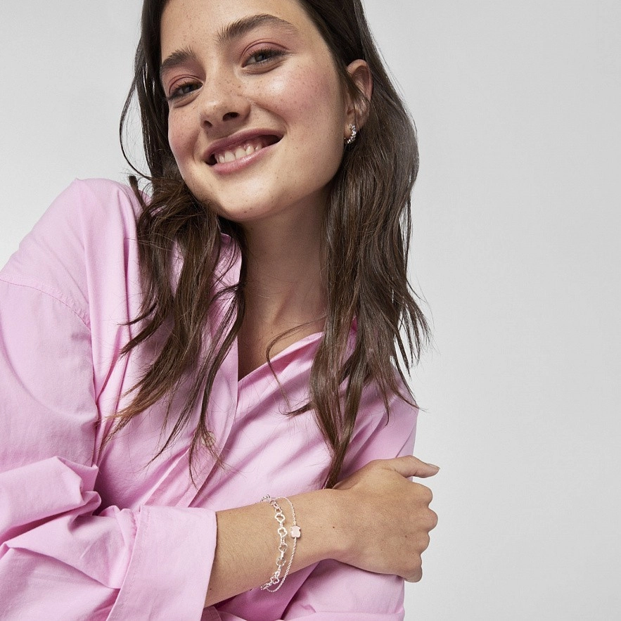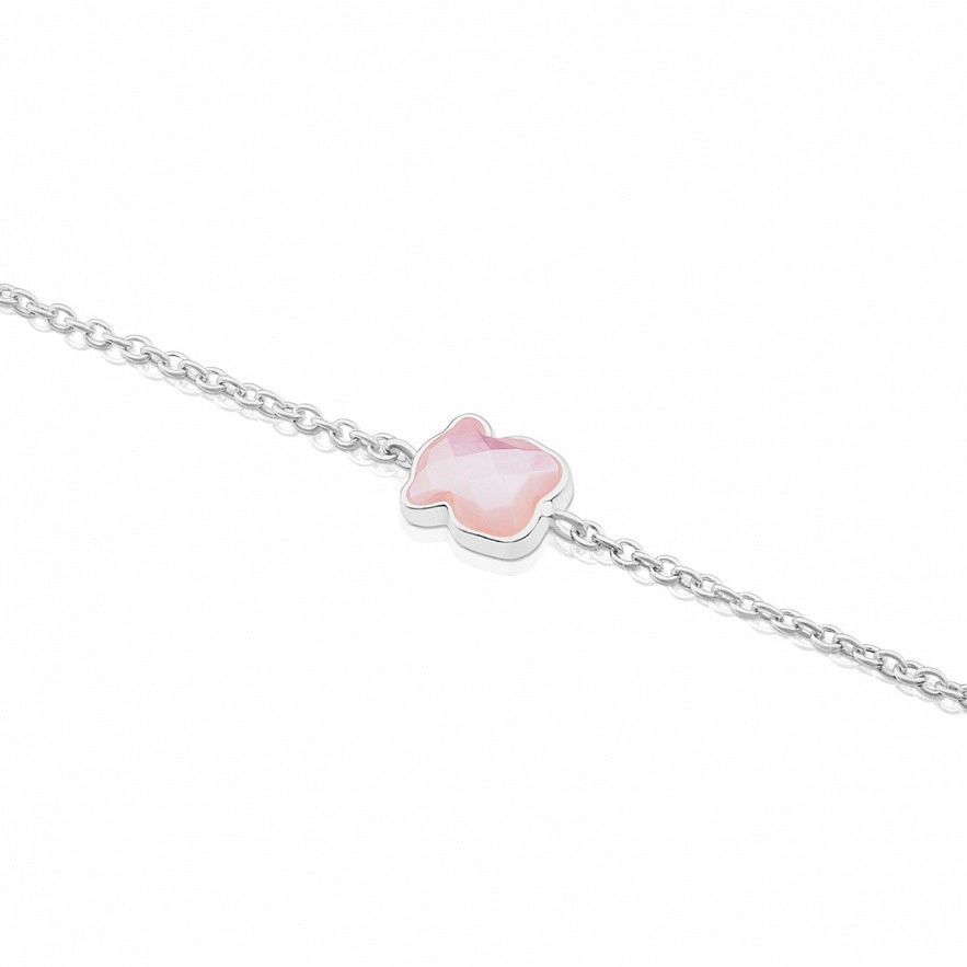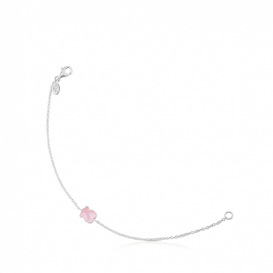 Браслет TOUS New Color, из серебра 925 пробы с розовым кварцем. Медвежонок: 9 мм. Длина: 17,5 см.