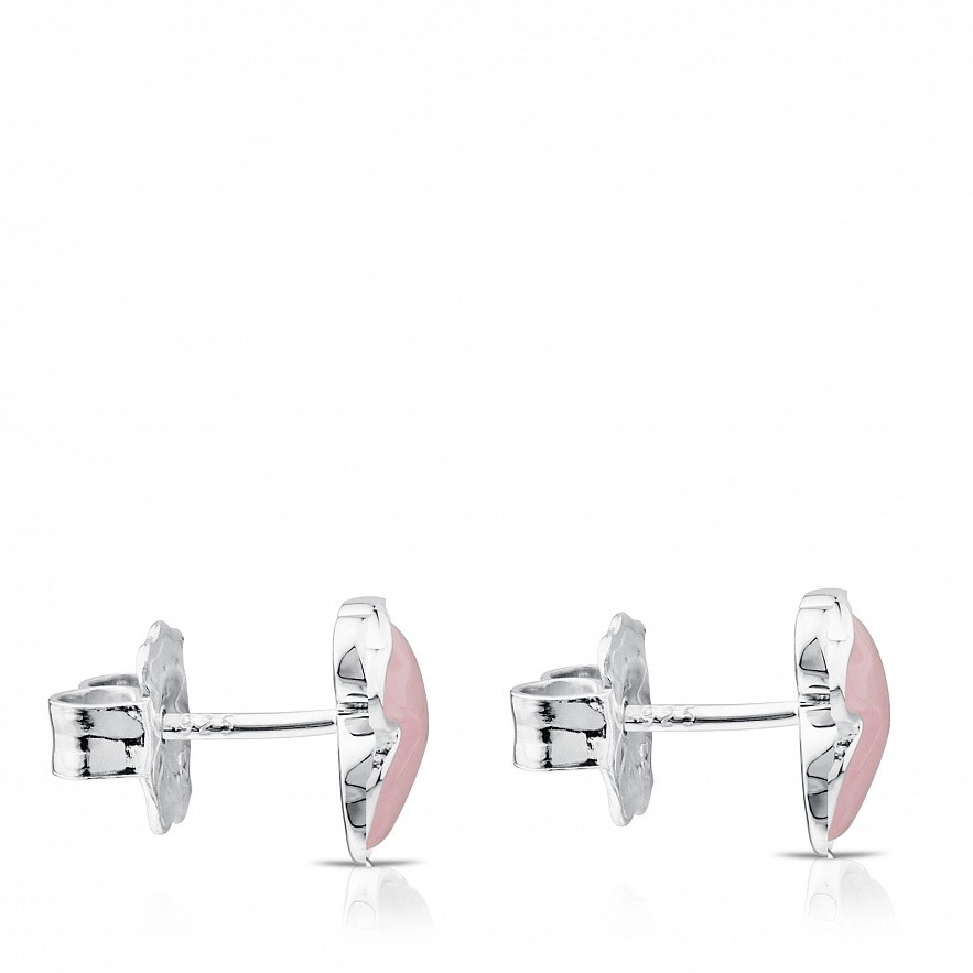 Серьги TOUS New Color из стерлингового серебра с розовым кварцитом. Замок-гвоздик. Фигурка: 0,9 см.