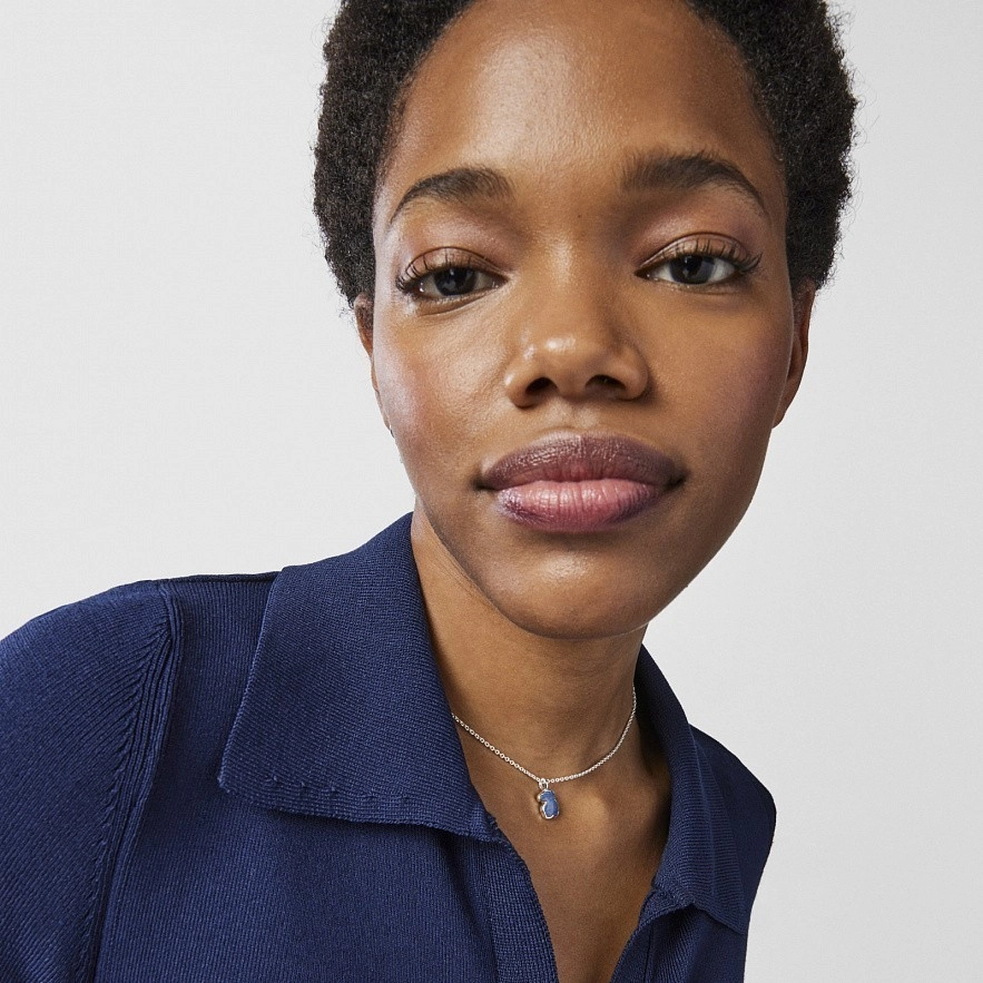 Ожерелье, которое подчеркивает ваш безупречный вкус. Серебро и дюмортьерит - сочетание элегантности и дерзости. Неуловимая тайна ночи в вашем повседневном гардеробе.