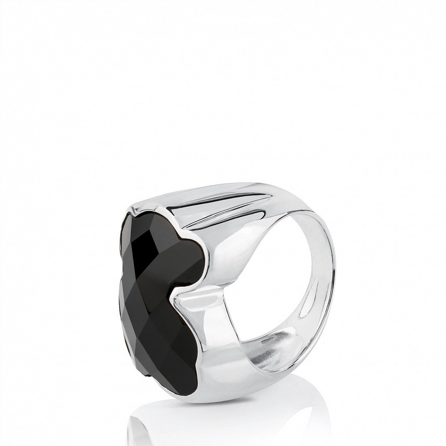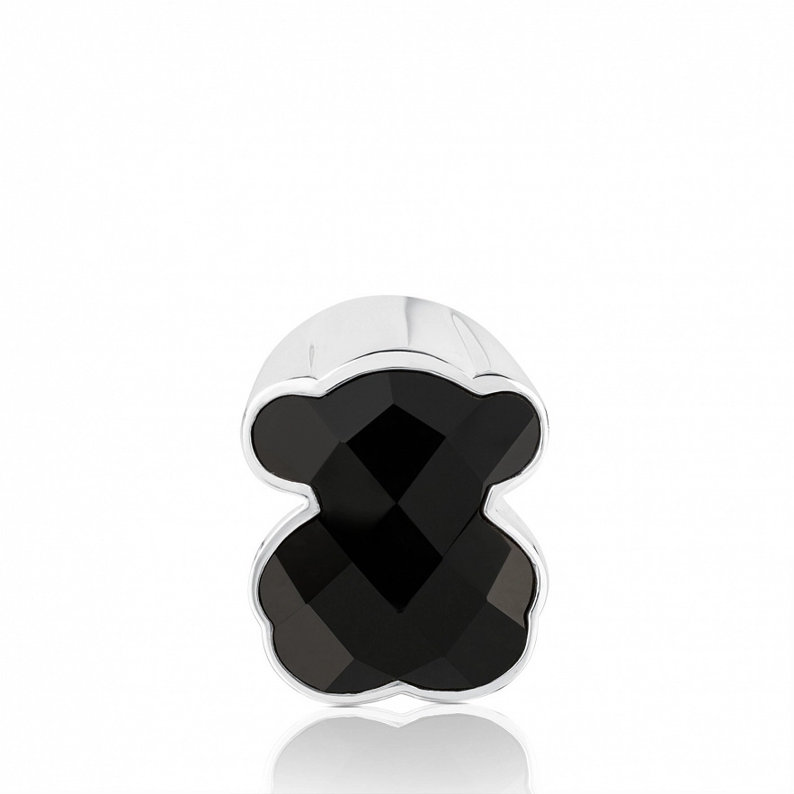 Серебряное кольцо TOUS Color с медвежонком из черного оникса. 2 см. Медвежонок: 1,6 см
