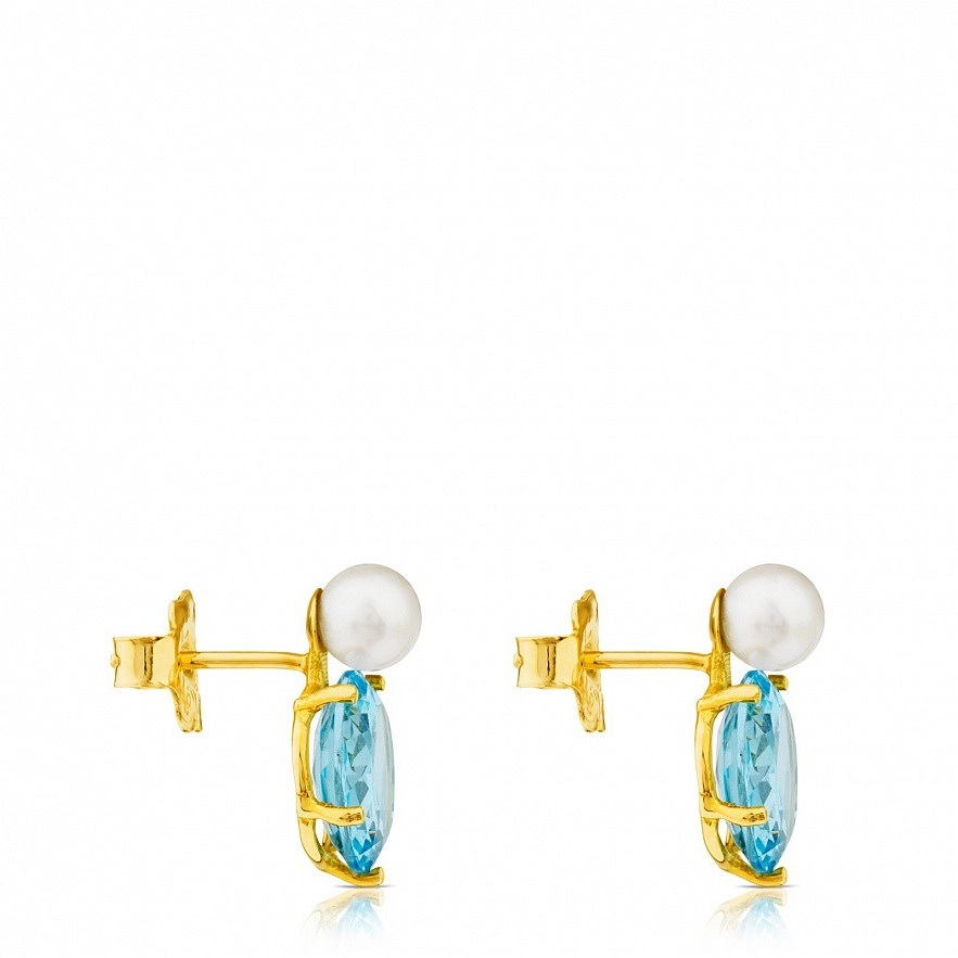Серьги TOUS Ivette, из желтого золота 18 kt, с голубым топазом и жемчугом. Размер: 15 мм.