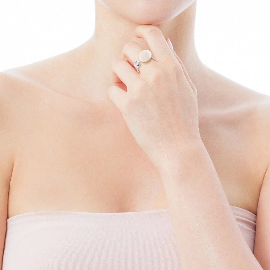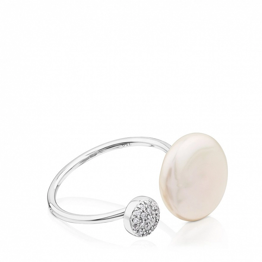 Кольцо TOUS Alecia, из белого золота 18 kt с бриллиантами 0,08 ct и жемчужиной.
