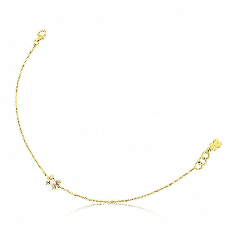 Браслет TOUS Eklat из желтого золота 750 пробы с бриллиантами 0,06 ct и жемчужиной 3 мм. Длина: 17,5 см.