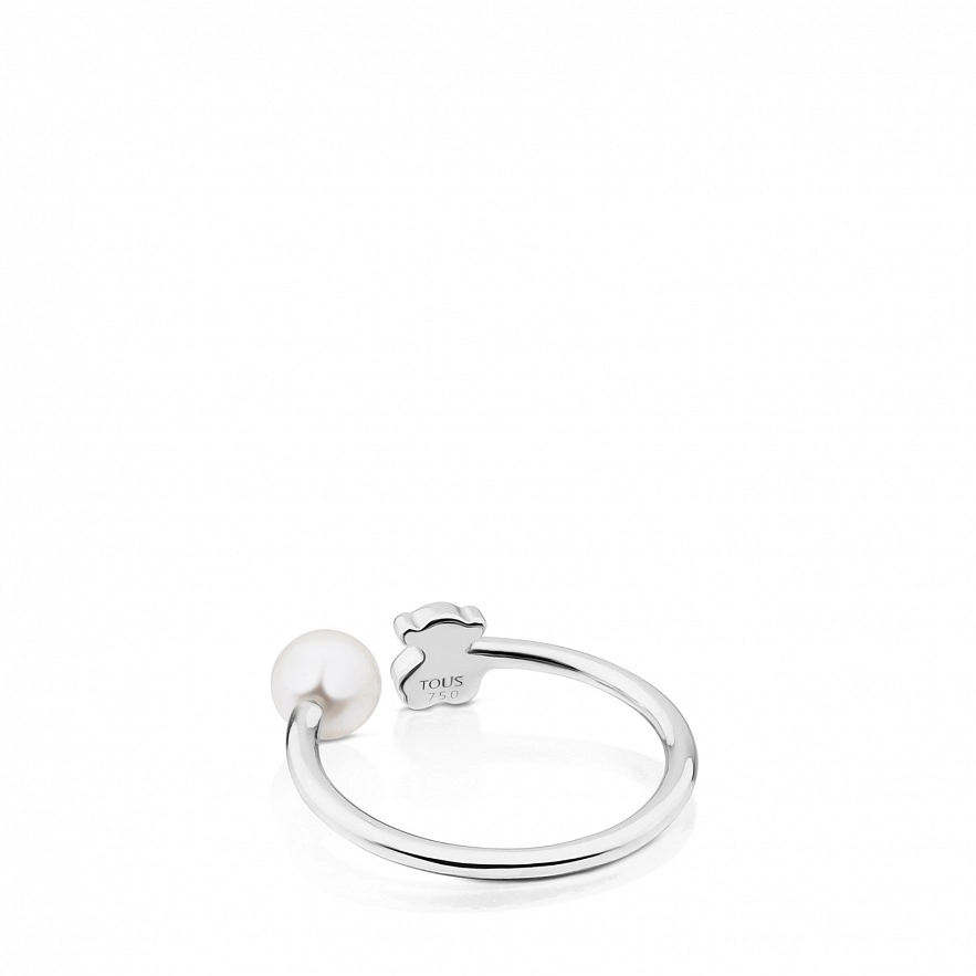 Кольцо TOUS PUPPIES из белого золота 18 карат с бриллиантами и жемчужиной 5 мм. Размер: 5,6 см.