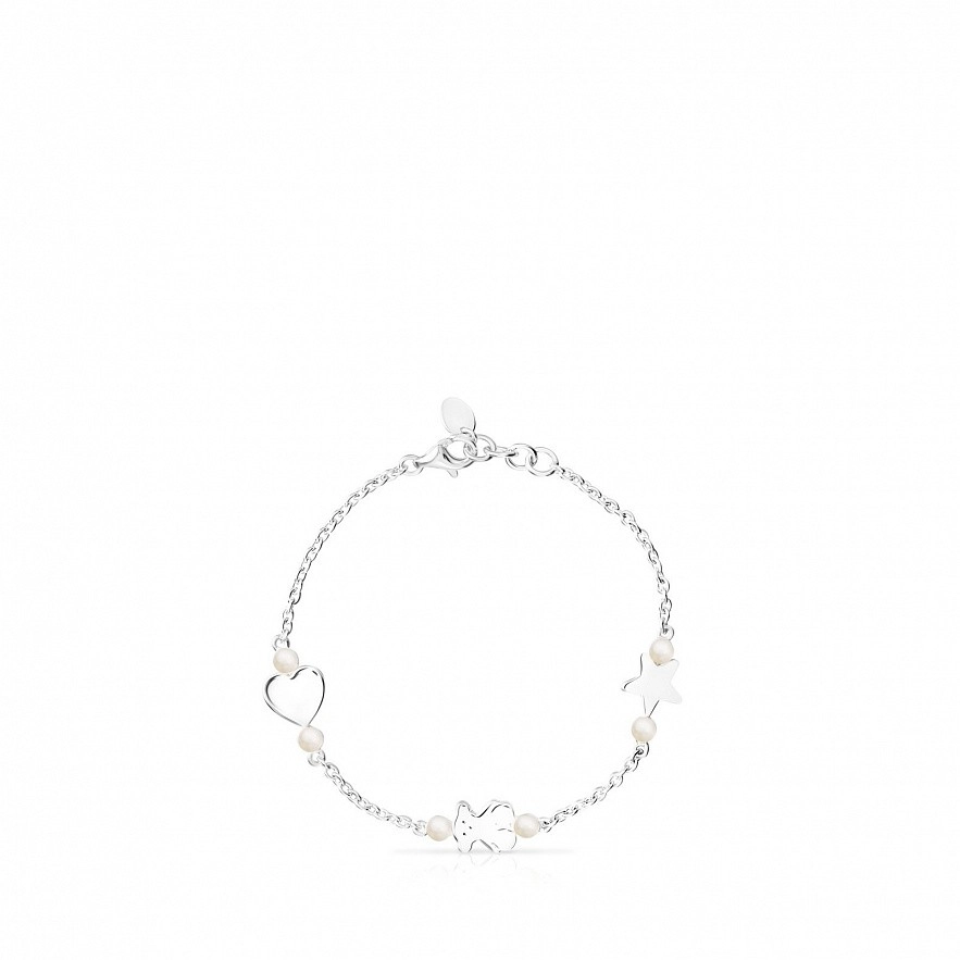 Браслет TOUS Real Sisy, из серебра 925 пробы со вставками из жемчуга. Длина: 17,5 см.