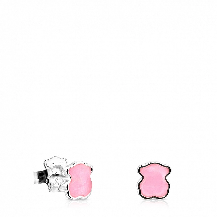 Серьги TOUS Color из серебра высшей пробы с розовым кварцитом. Застежка-пусет. Вставка: 0,7 см.