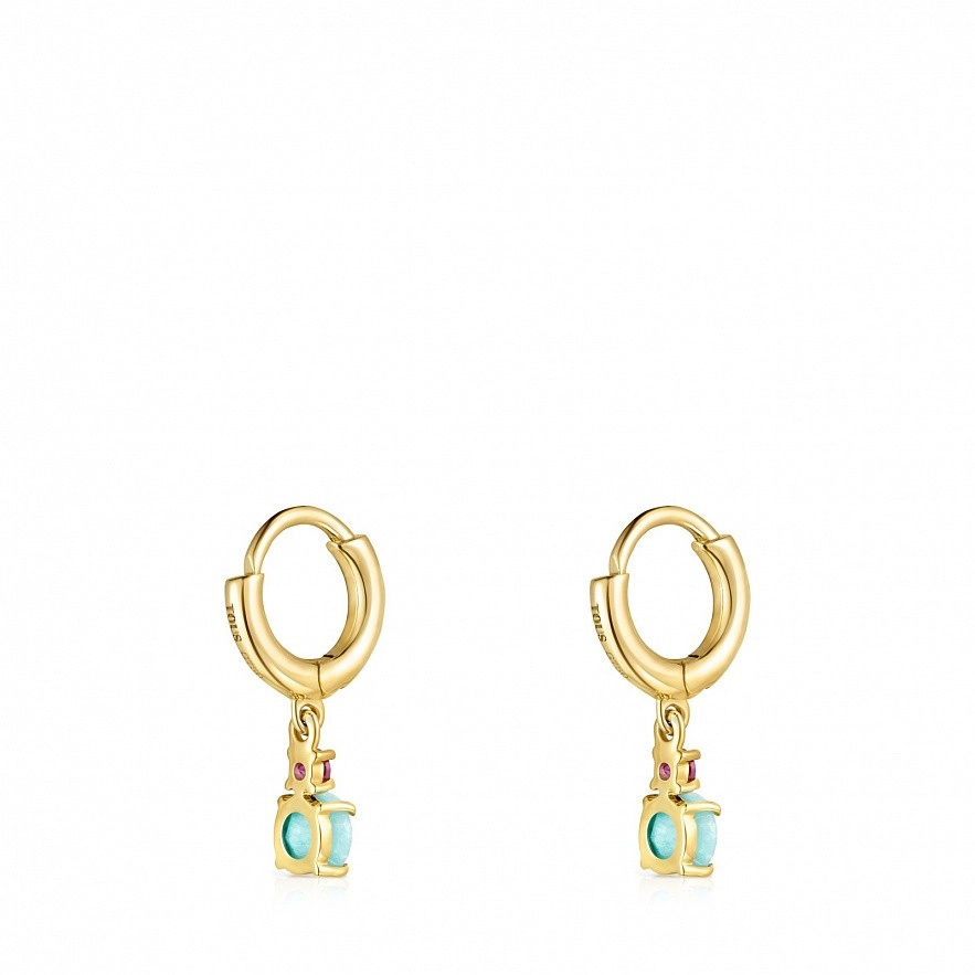 Серьги-обручи TOUS Mini Ivette из золота 18 карат c амазонитом и рубином. Каталонская застежка. Размер: 0,6 см.
