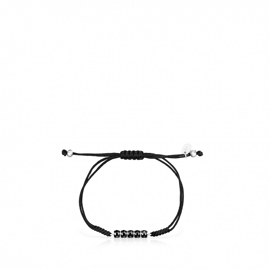 Браслет TOUS Mini Onix из серебра 925 пробы с ониксом на черном шнурке. Размер: 2 см. Длина: 17,5 см.