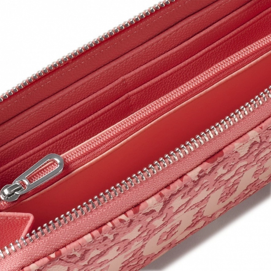 Гаманець TOUS Kaos Mini Evolution з принтом Kaos коралового кольору. Застібка на кнопки. Має відділення для монет, яке закривається на блискавку. Всередині дванадцять слотів для карток, відкрите відділення для банкнот і два відкритих відділення. Розміри (висота х ширина х глибина): 9,5 х 19,5 х 2 см.