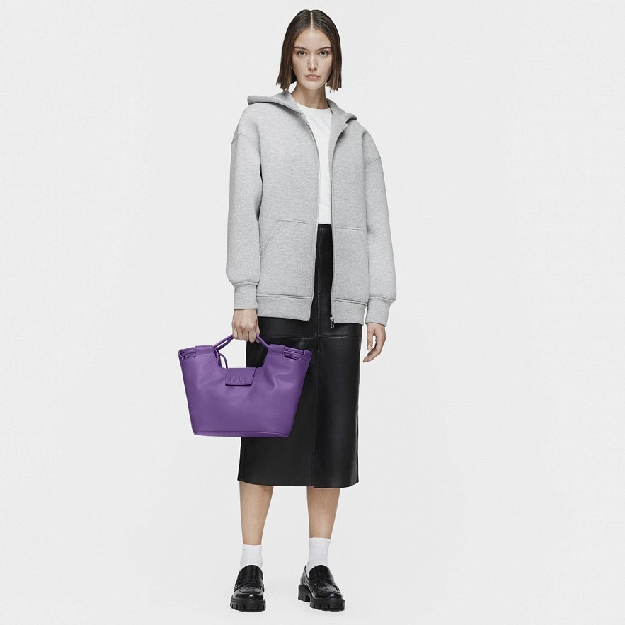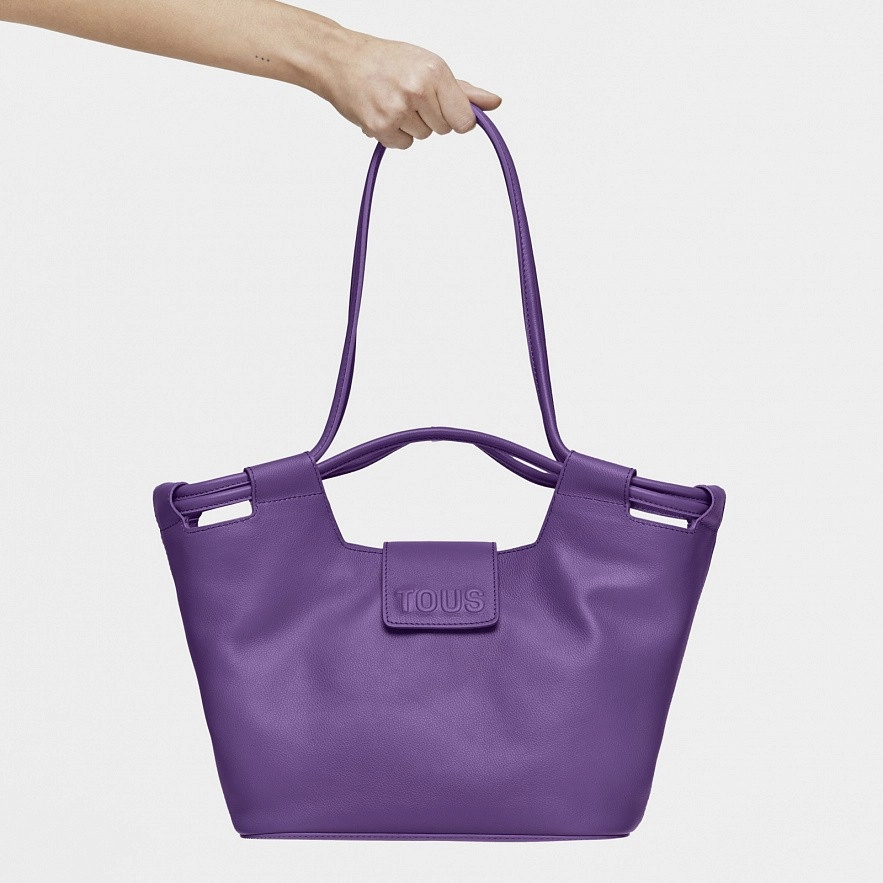 Сумка середнього розміру TOUS Sun з фіолетової коров'ячої шкіри з сертифікатом LWG . Застібка на магнітній кнопці. Внутрішня кишеня на блискавці. Фіксовані ручки та плечові ремені. Розміри (висота х ширина х глибина): 23 х 43 х 12 см.