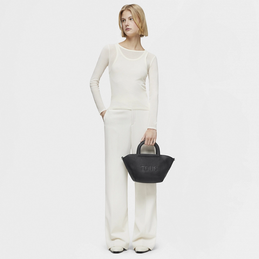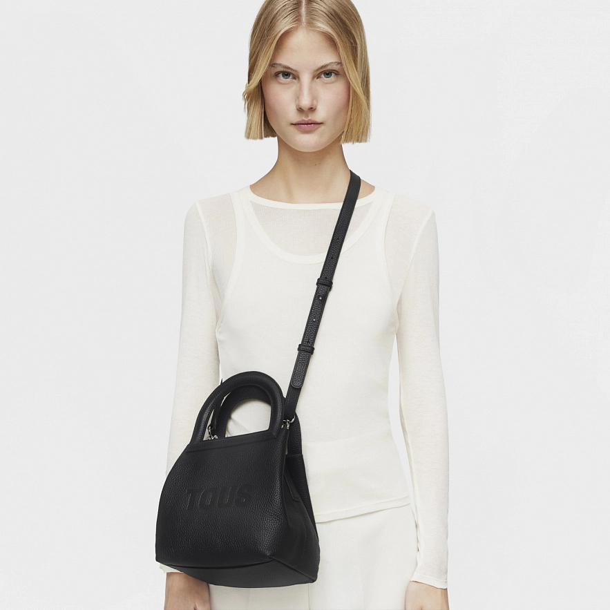 Сумка через плече TOUS Dora з волов'ячої шкіри з сертифікатом LWG чорного кольору. Застібка на магнітній кнопці. Фіксована ручка, регульований та знімний ремінь через плече. Розміри (висота х ширина х глибина): 20 x 18 x 9 см.