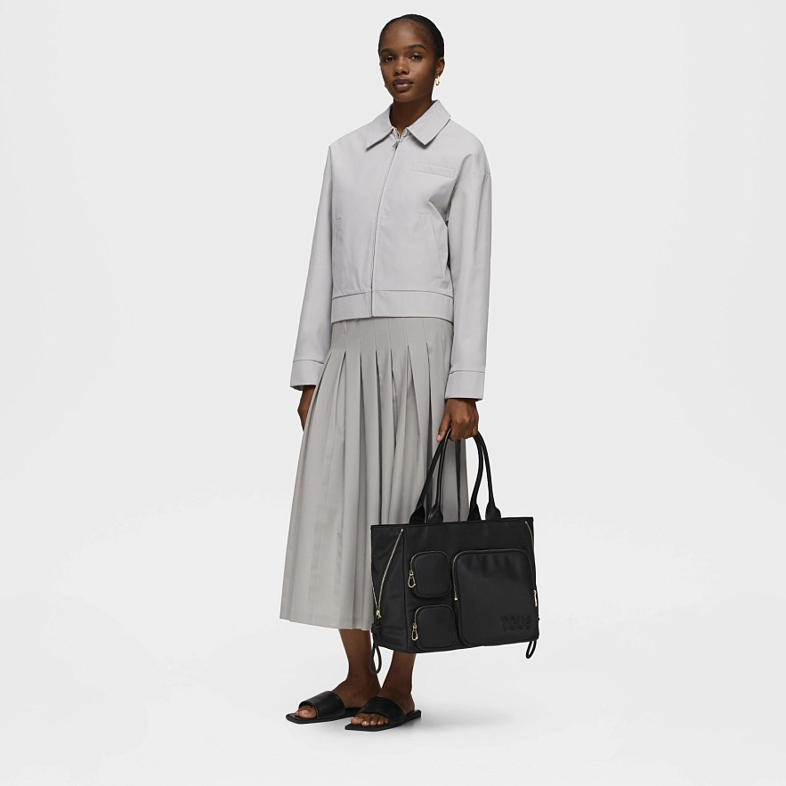 Сумка TOUS Roomy з переробленого поліестеру та поліуретановою обробкою. Застібається на блискавку, має три зовнішні кишені на блискавці та відкриту кишеню всередині. Фіксовані плечові ремені. Розміри (висота х ширина х глибина): 18 х 42 х 16,5 см.