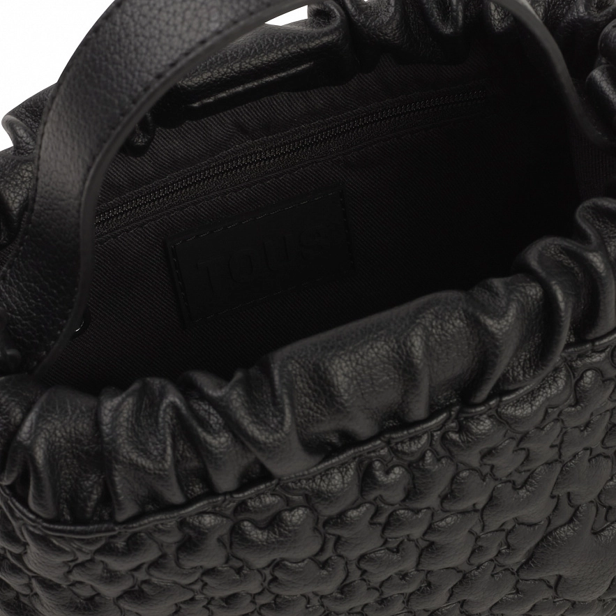 Сумка TOUS Puffy Bear зі штучної шкіри чорного кольору. Застібка на магнітній кнопці. Внутрішня кишеня. Фіксована ручка та регульований і знімний ремінь через плече. Розміри (висота х ширина х глибина): 14 x 22 x 10 см.