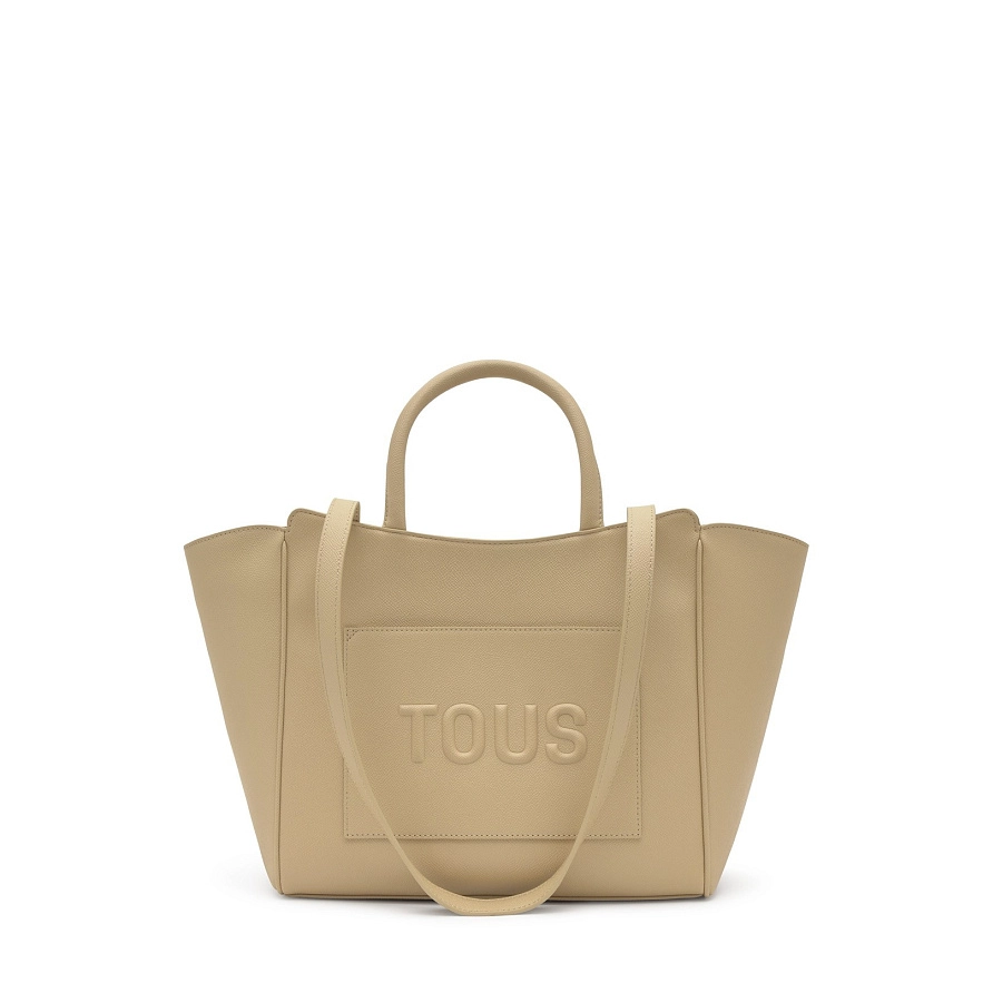 Cумка TOUS Brenda пісочного кольору з поліуретану. Застібка-блискавка. Внутрішня кишеня на блискавці. Фіксовані ремені через плече і ручні ремені. Розміри (висота x ширина x глибина): 27 x 47 x 16 см.