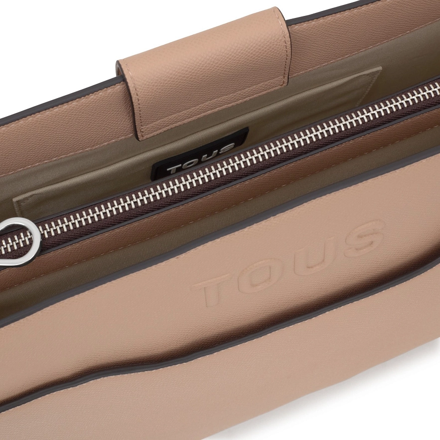 Сумка TOUS Audree Saffiano середнього розміру з поліуретану пудрового кольору. Магнітне закриття. Два відділення, розділені одним на блискавці. Внутрішня кишеня та зовнішня кишеня відкриваються. Два знімних плечових ременя. Розміри (висота х ширина х глибина): 25 х 33,5 х 12,5 см.