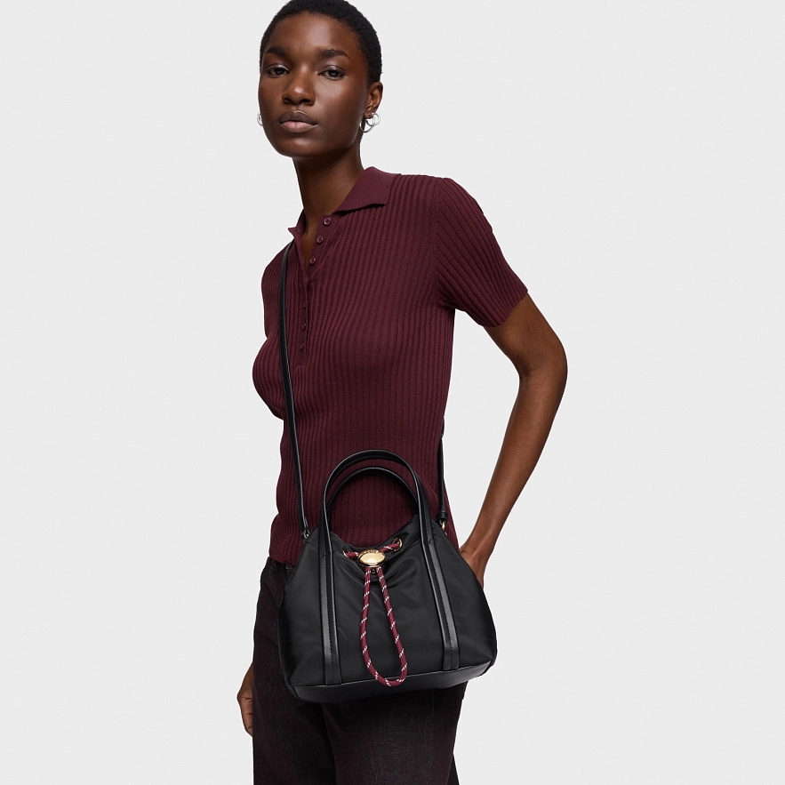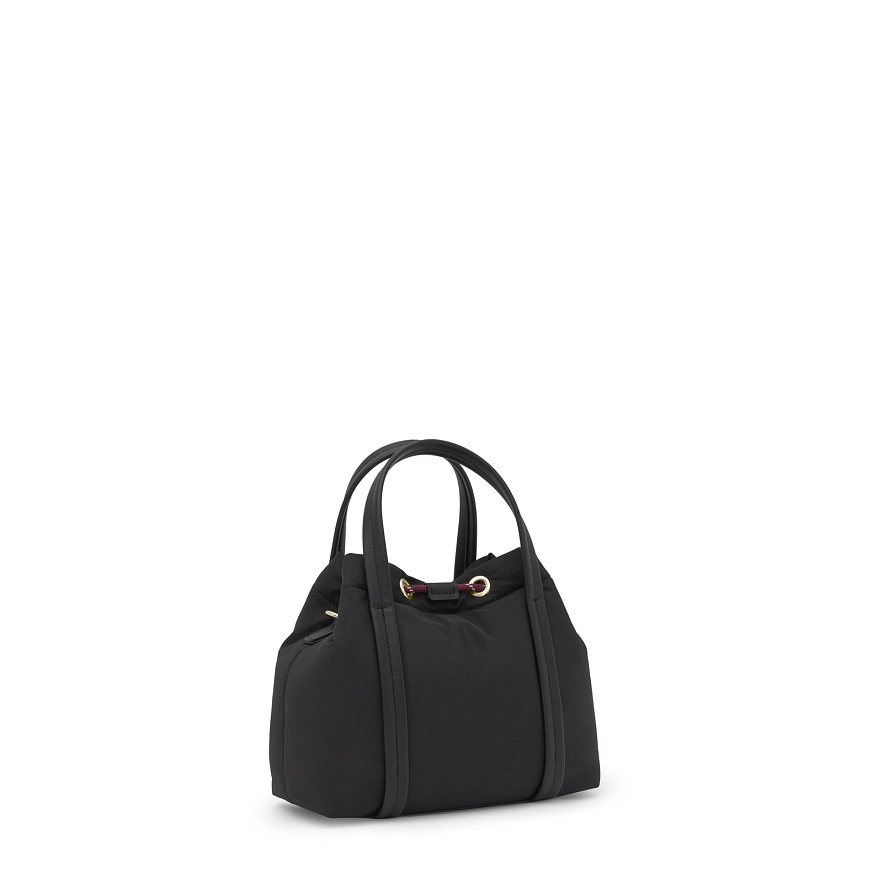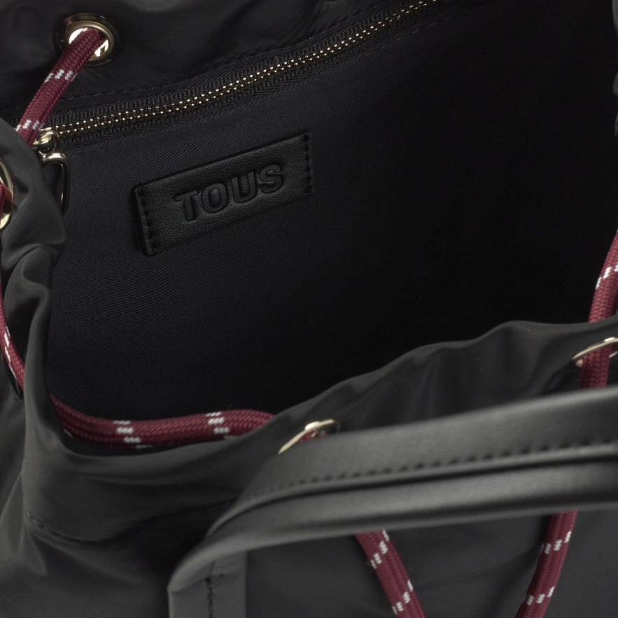 Сумка TOUS Empire Soft з переробленого поліестеру з чорною поліуретановою обробкою. Регульована застібка на шнурку. Має внутрішню кишеню. Фіксовані ручки та регульований і знімний ремінь через плече. Розміри (висота x ширина x глибина): 21 x 24 x 10 см.