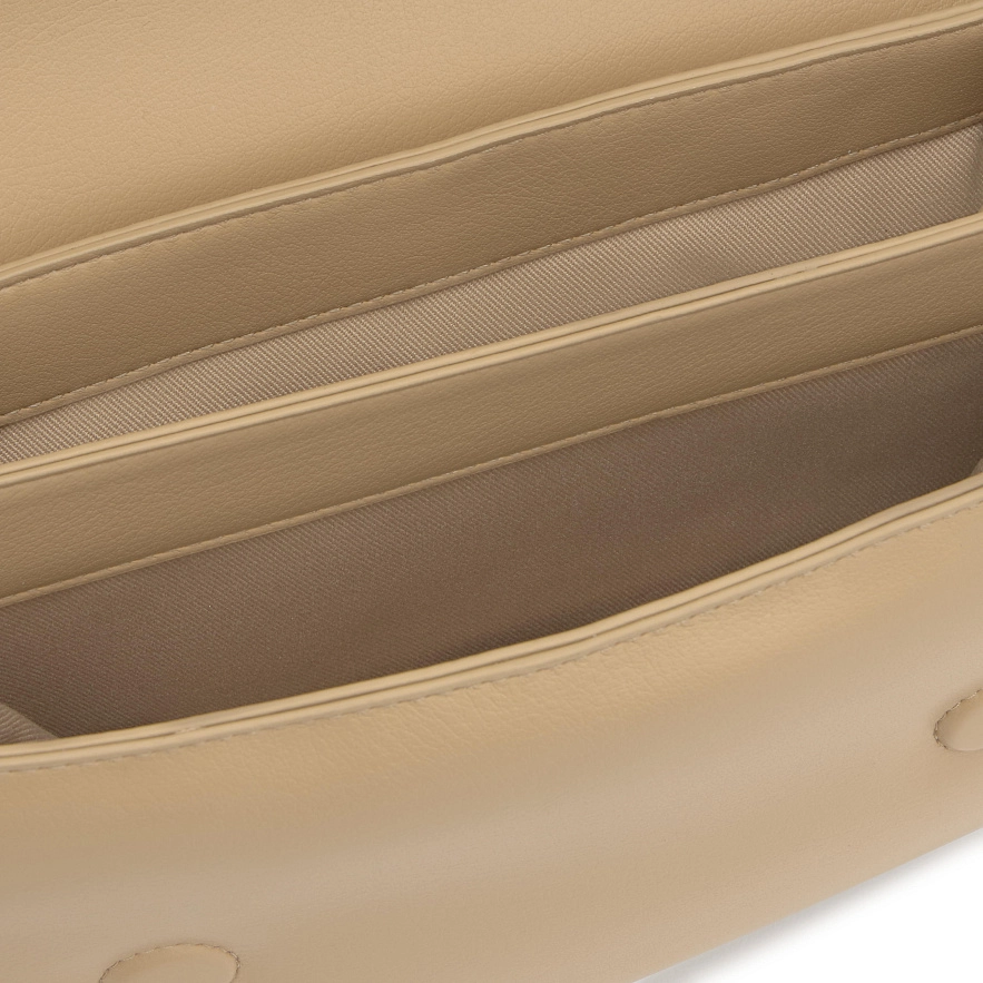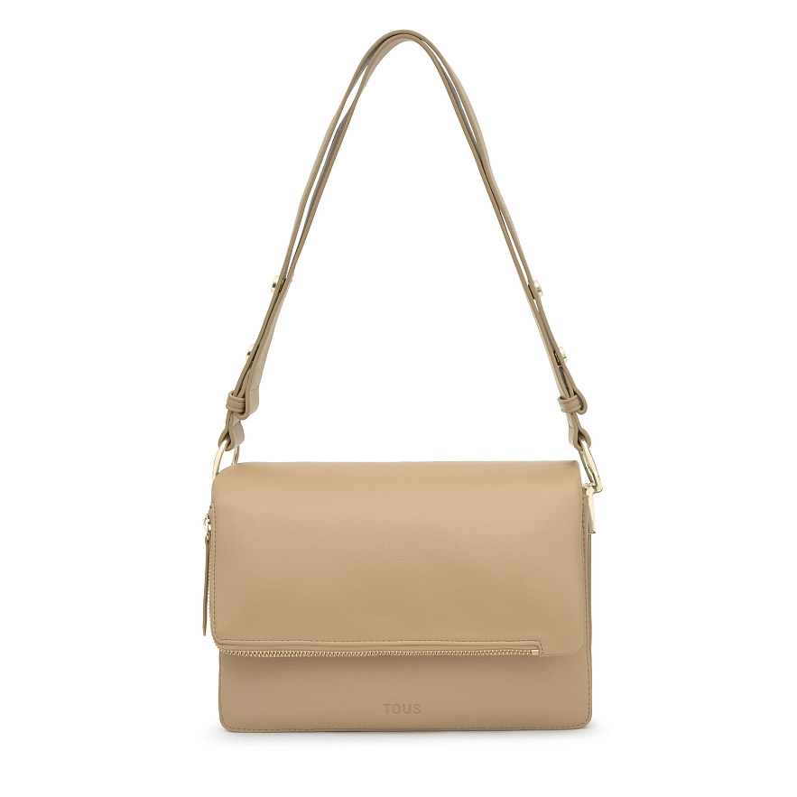 Сумка TOUS Audree Soft через плече з поліуретану пісочного кольору. Має клапан і застібку з двома магнітними кнопками. Має два відділення, розділені між собою застібкою-блискавкою, та відкриту кишеню спереду. Регульований ремінь через плече. Розміри (висота x ширина x глибина): 17 x 25 x 10 см.