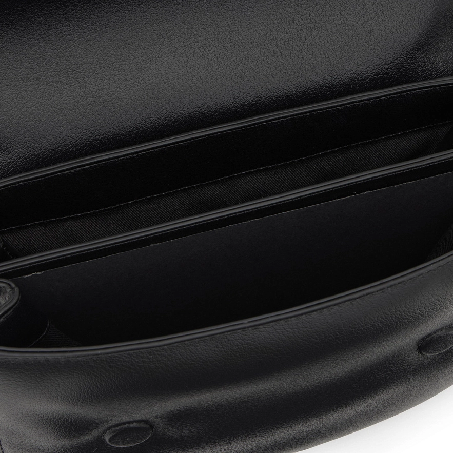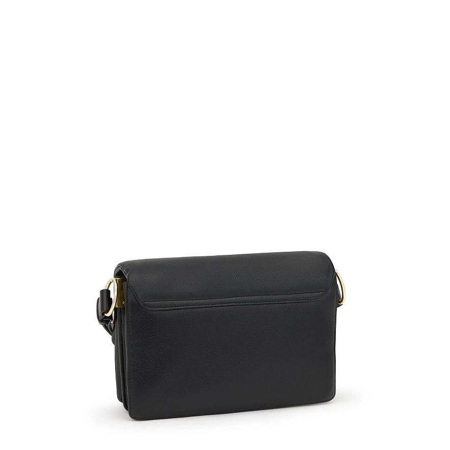 Сумка TOUS Audree Soft з поліуретану чорного кольору через плече. Має клапан і застібку з двома магнітними кнопками. Має два відділення, розділені між собою застібкою-блискавкою, та відкриту кишеню спереду. Регульований ремінь через плече. Розміри (висота x ширина x глибина): 17 x 25 x 10 см.
