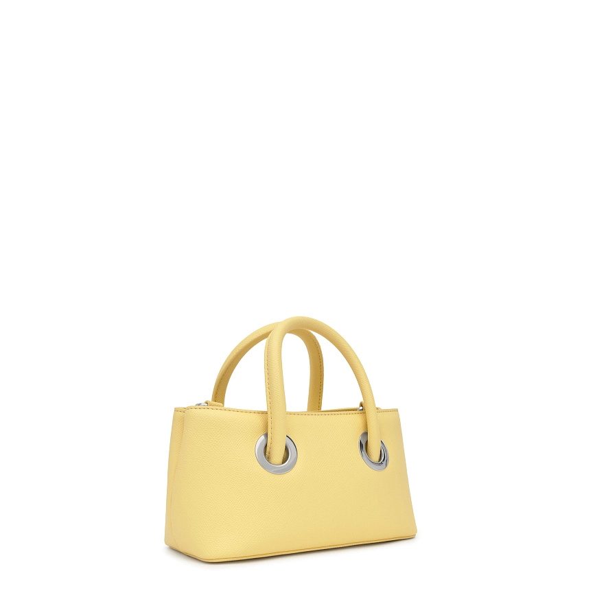 Сумка TOUS Poppy з поліуретану жовтого кольору. Має два відділення на блискавці. Відкрита внутрішня кишеня. Фіксовані ручки та регульований і знімний ремінь через плече. Розміри (висота x ширина x глибина): 11,5 x 21 x 10 см.