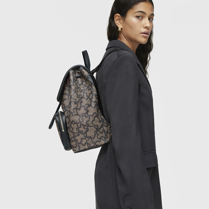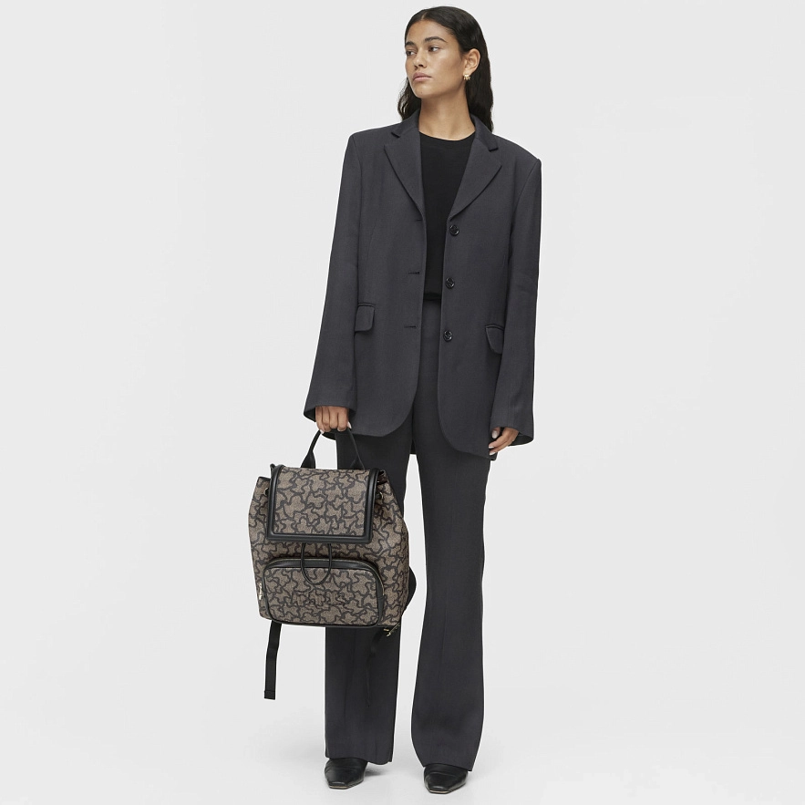 Рюкзак TOUS Kaos Icon зі штучного матеріалу з чорно-сірим принтом і деталями з поліуретану. Основне відділення з магнітною застібкою і регульованим шнурком. Зовнішня кишеня на блискавці і внутрішня відкрита кишеня. Фіксована ручка і регульовані ремені через плече. Розміри (висота x ширина x глибина): 34 x 36 x 23 см.