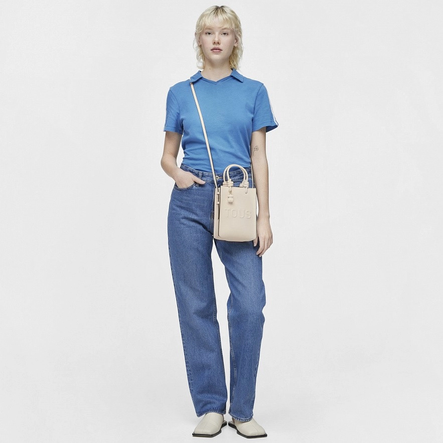 Маленька сумка TOUS La Rue New Pop зі штучної шкіри бежевого кольору. Застібка на магнітні кнопки. Фіксовані ручки та регульований та з`ємний ремінь через плече. Розміри (висота х ширина х глибина): 20,5 х 16 х 6 см.