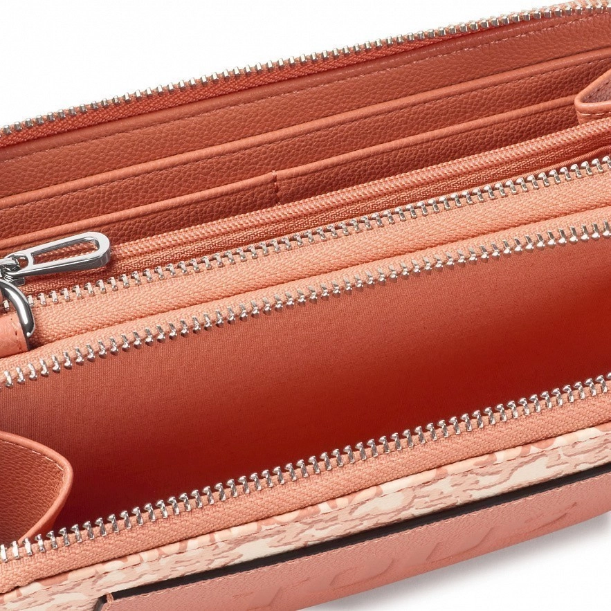 Гаманець Kaos Mini Evolution зі штучної шкіри з принтом Kaos помаранчевого кольору. Має два основних відділення, які закриваються на блискавку. Одне відділення достатньо велике, може вмістити мобільний телефон. Інше - має вісім слотів для карток, місце для монет і для купюр. Регульований ремінь через плече. Розміри (висота х ширина х глибина): 10 х 19,5 х 4 см.