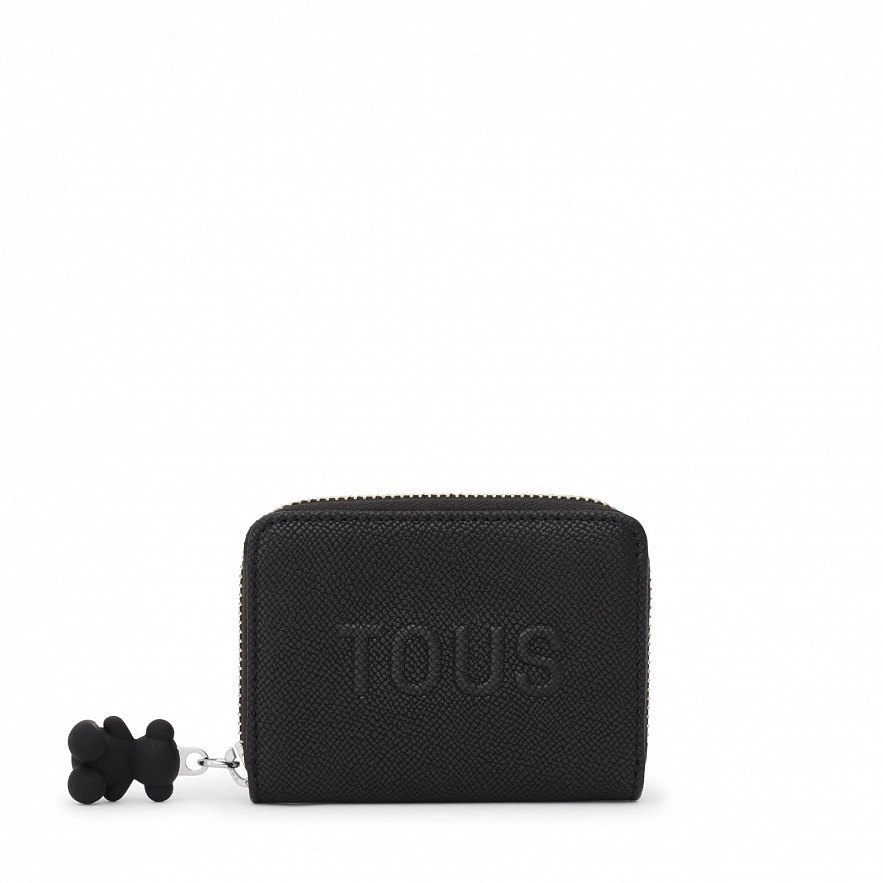 Гаманець TOUS La Rue New з чорної штучної шкіри. Має три відкриті відділення для монет і два слоти для карток. Застібка-блискавка. Розміри (висота х ширина х глибина): 8 х 11 х 3 см.